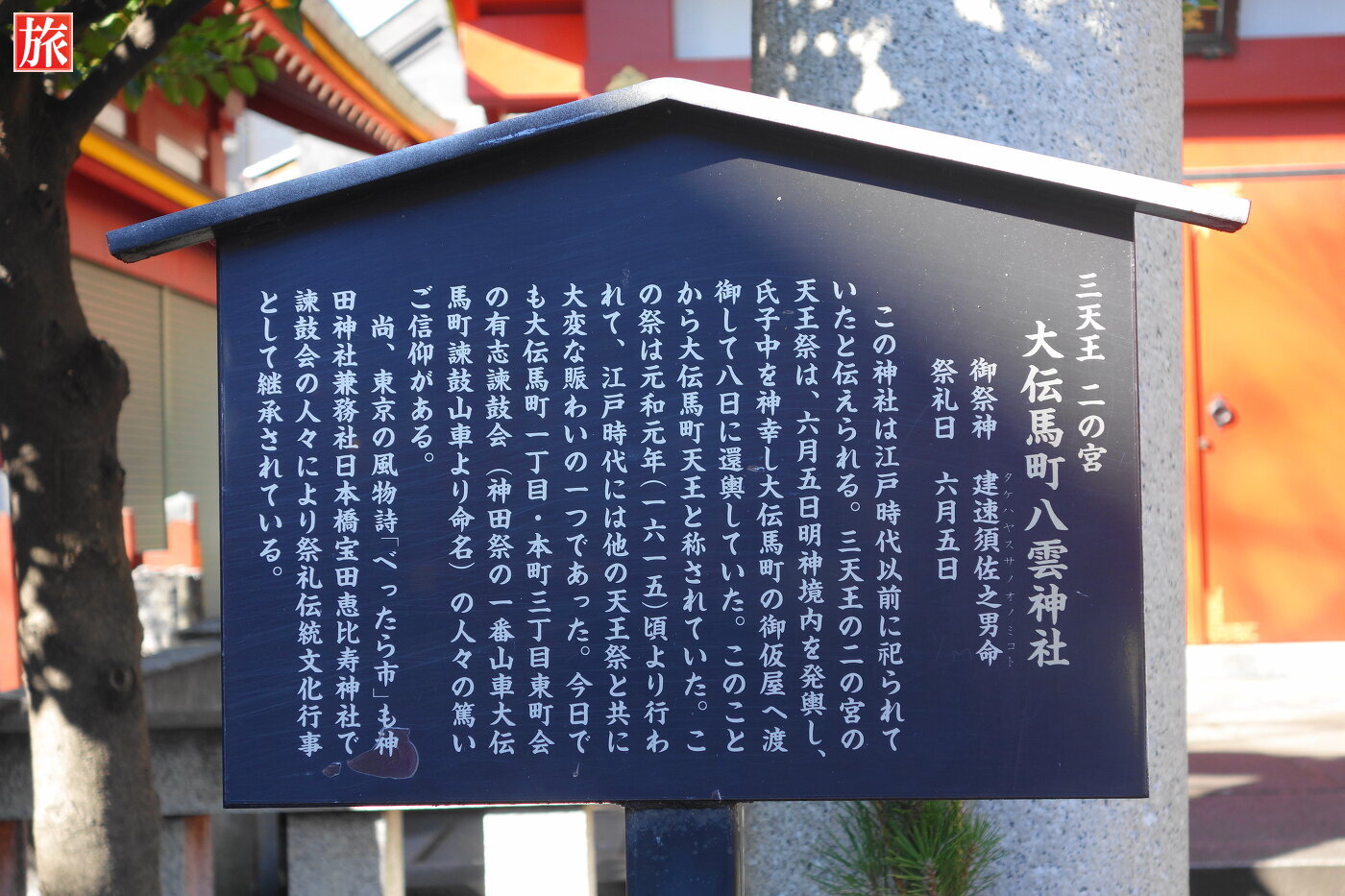 大伝馬町八雲神社。大伝馬町八雲神社の説明。小舟町八雲神社。小舟町八雲神社の説明。