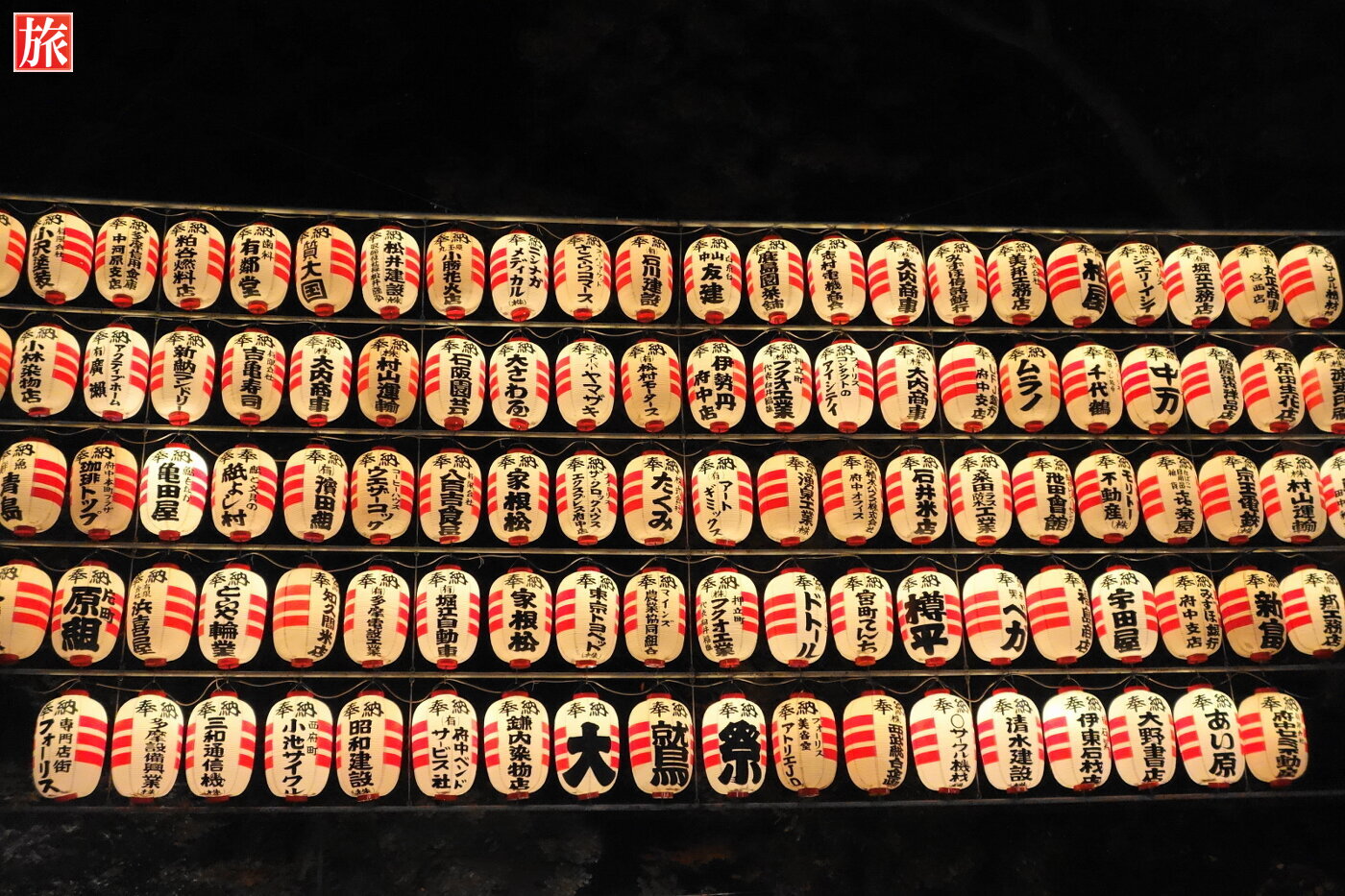 随神門入り口の様子です。右側にあった熊手です。随神門から見た提灯の様子です。
