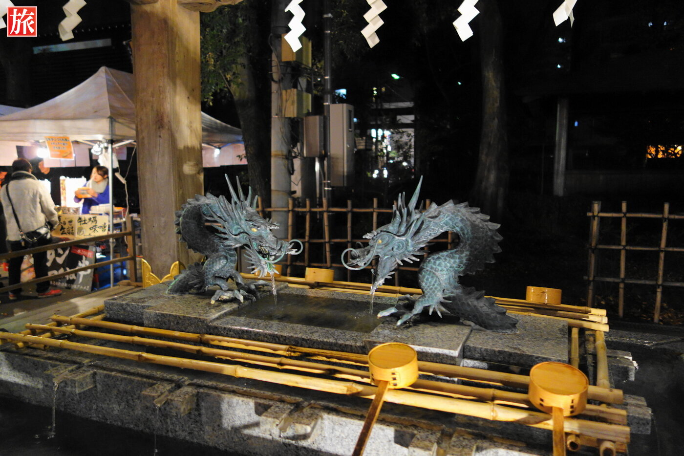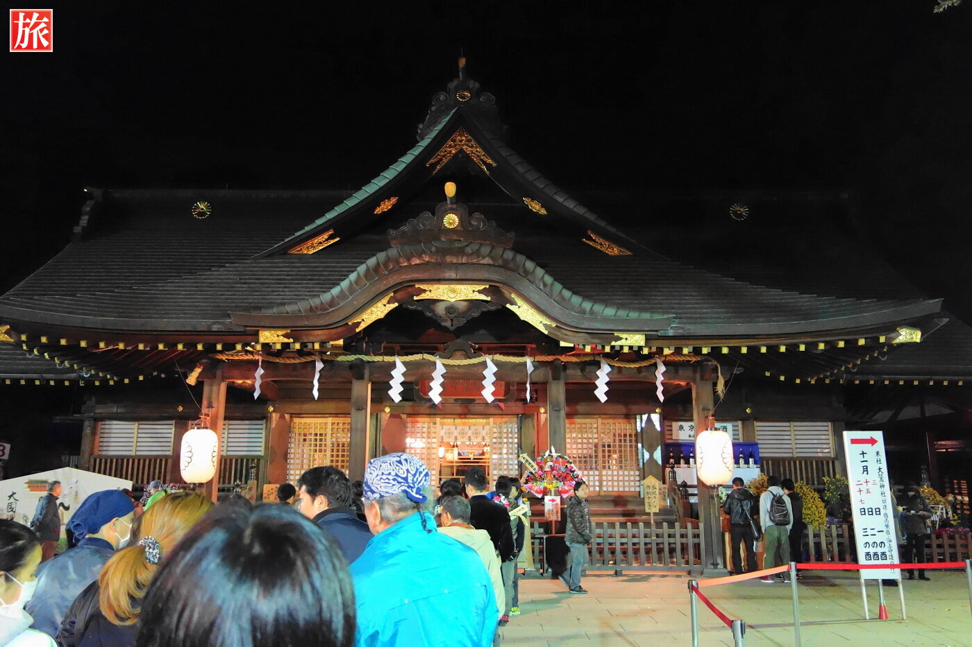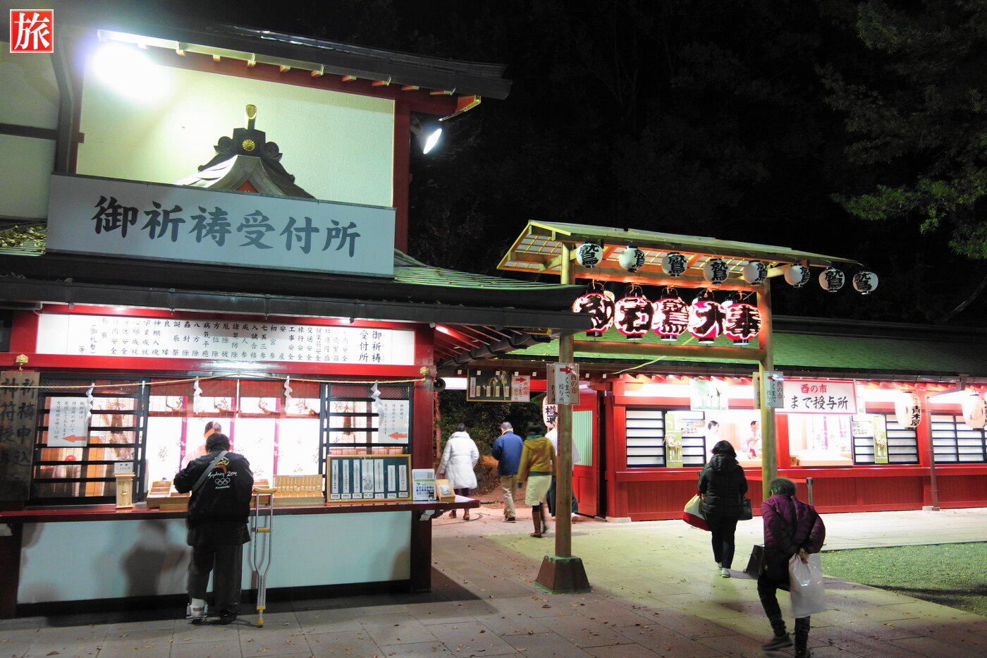 随神門をくぐり先に進みます。本殿・拝殿の右手にある「酉の市」熊手授与所です。お参りする順番を待ちます。