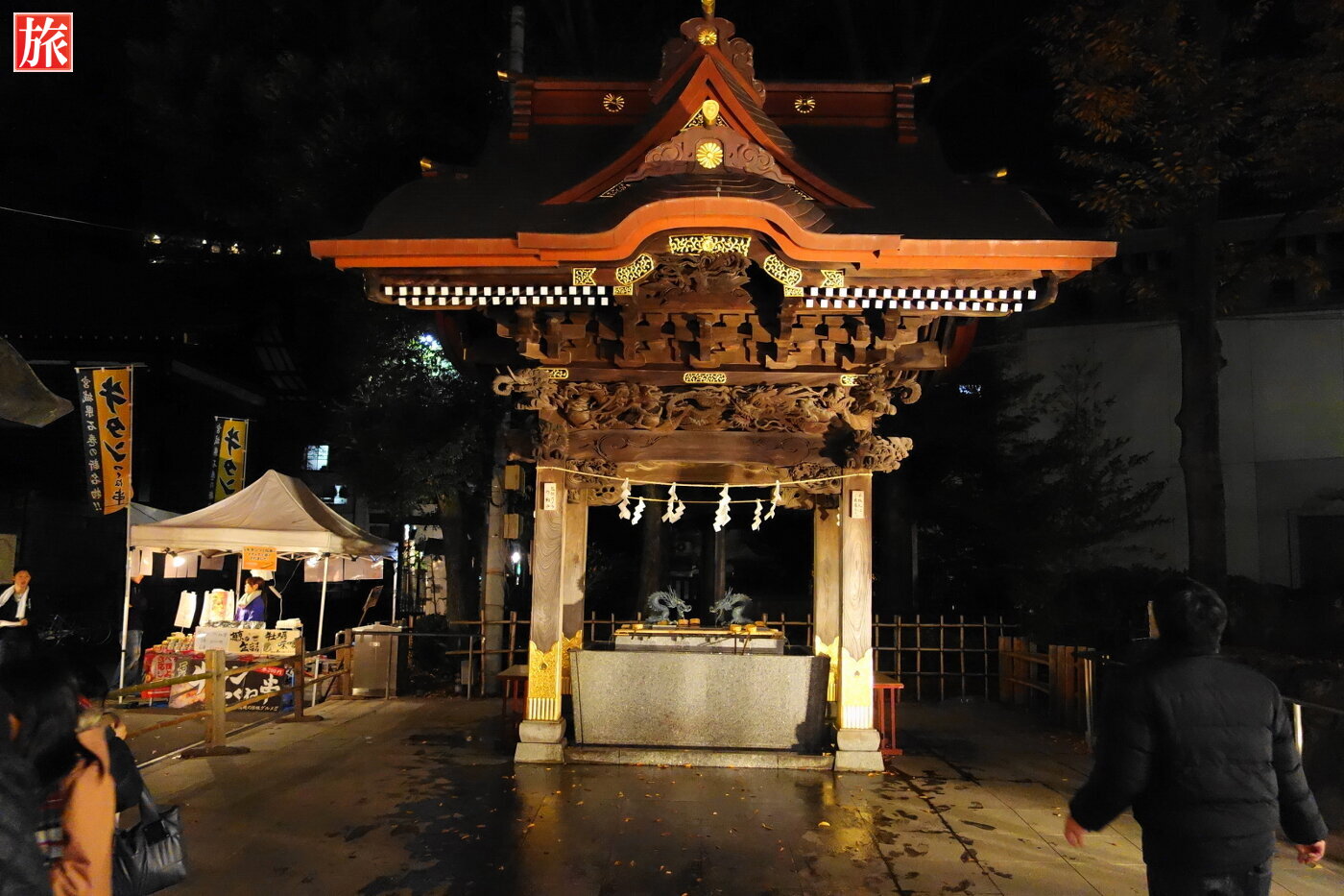 大鷲神社の「酉の市」は鷲神社 (台東区)、花園神社(新宿区)ともに関東三大酉の市のひとつです。今日は今月3回目の酉の日でした。随神門に至る参道には沢山の出店と縁起熊手を売る露店が出店していました。