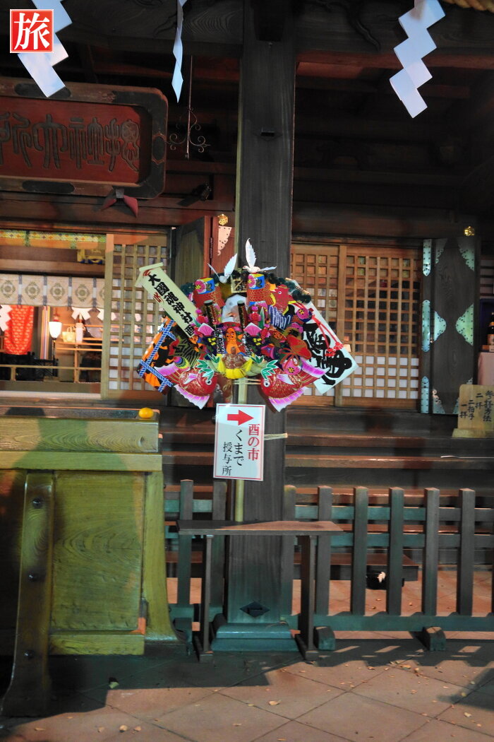 「酉の市」熊手授与所。熊手を授かりました。(販売価格1000円のものです)