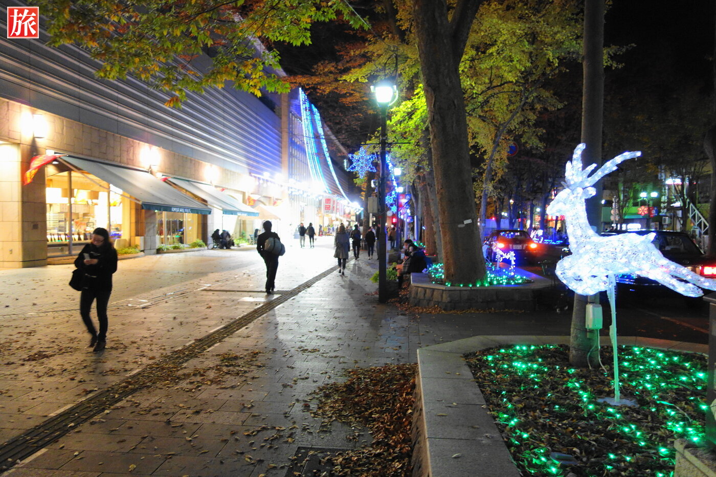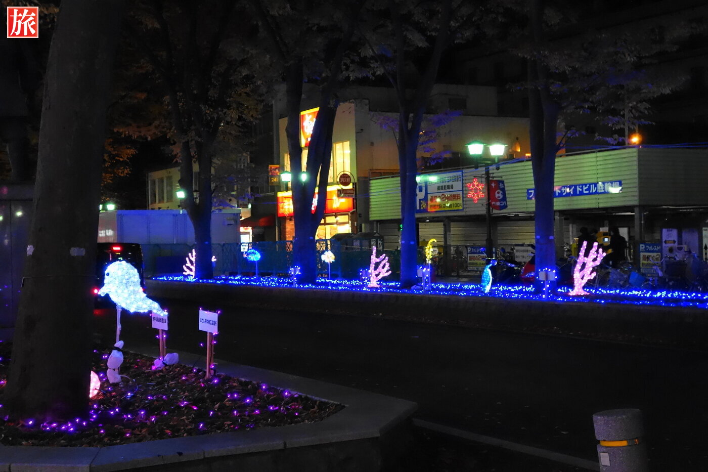 最寄の駅は京王線の府中駅です。馬場大門けやき並木を南方向に進みます。左側に伊勢丹が見えてきました。けやき並木にはイルミネーションが飾られていました。