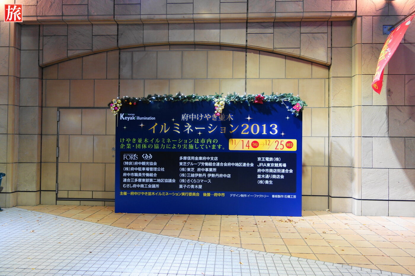 府中けやき並木2013の案内。伊勢丹に架かるイルミネーション。