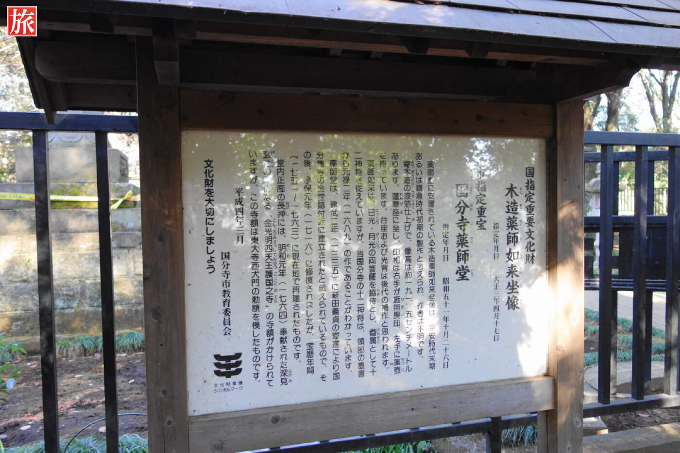 国分寺境内にある薬師堂。国分寺薬師堂の説明。本尊の木造薬師如来坐像は国の重要文化財に指定されています。木造薬師如来坐像は毎年1回、10月10日に一般開帳される秘仏です。