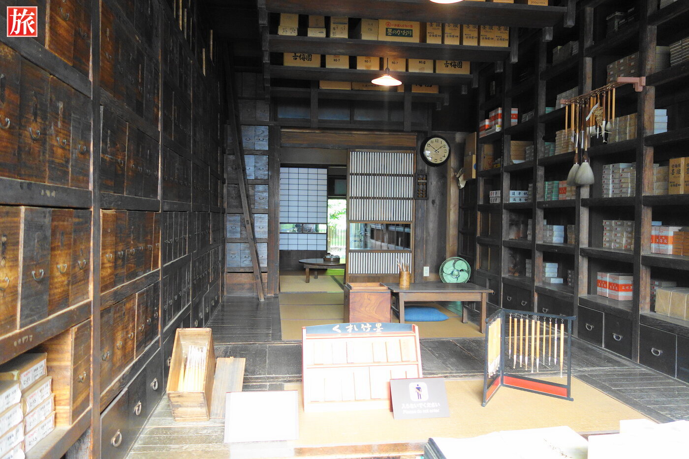 武井三省堂(文具店)。「千と千尋の神隠し」釜爺の仕事場のモデルになった場所です。左側にある天井まで続く、たっくさんの引き出しが印象的です。