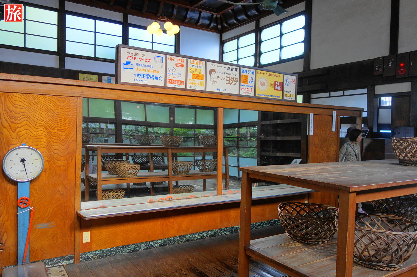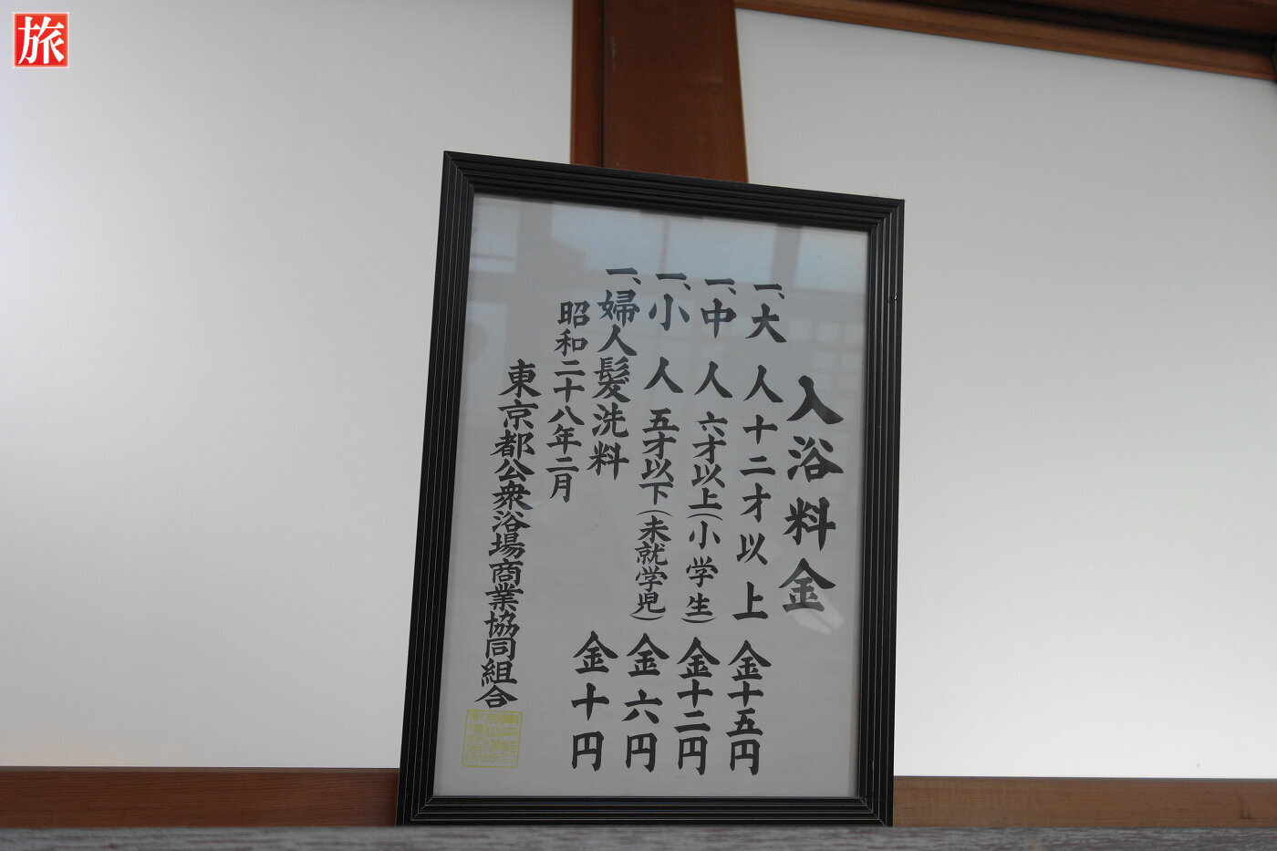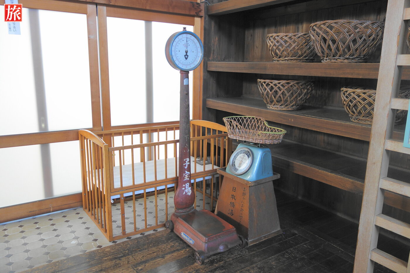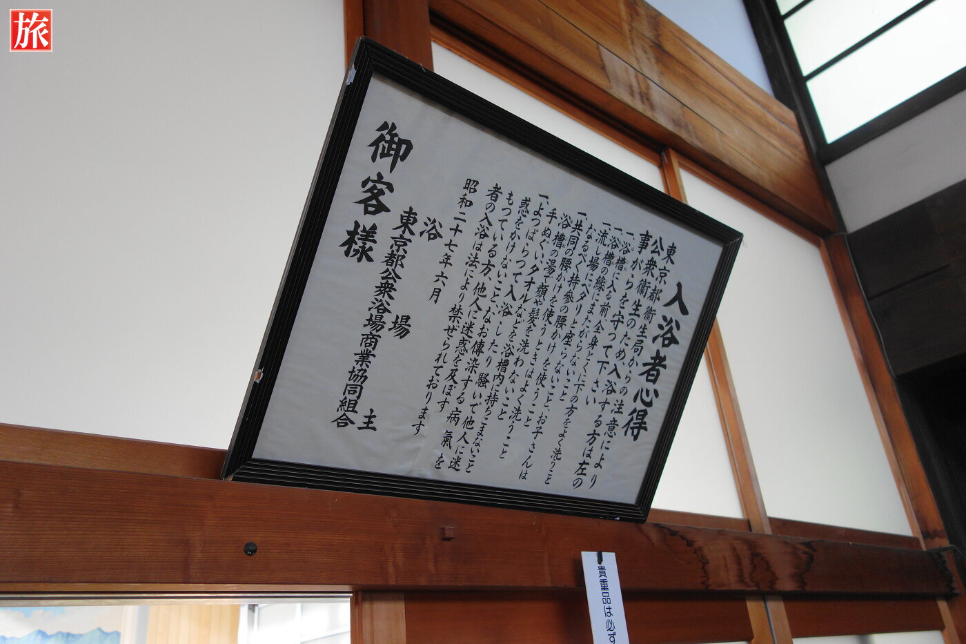 入浴者心得。昭和28年当時の入浴料金。男子脱衣場。女子脱衣場。女子脱衣場には赤ちゃんを計る体重計。