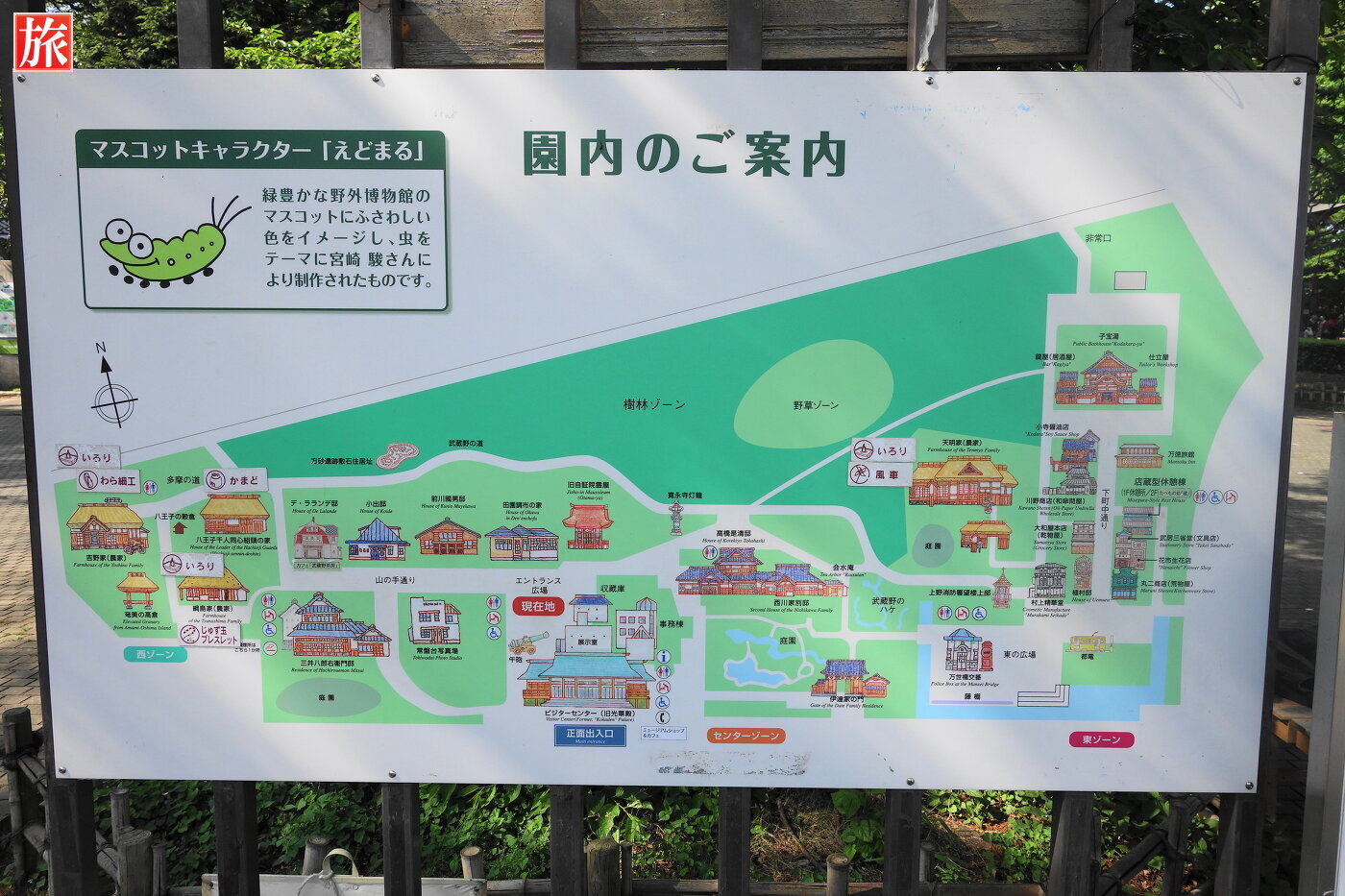 3ゾーンに分かれ、高橋是清邸や銭湯、茅葺きの農家など江戸時代から昭和初期までの文化的価値の高い27棟の建造物が移築・復元されている。