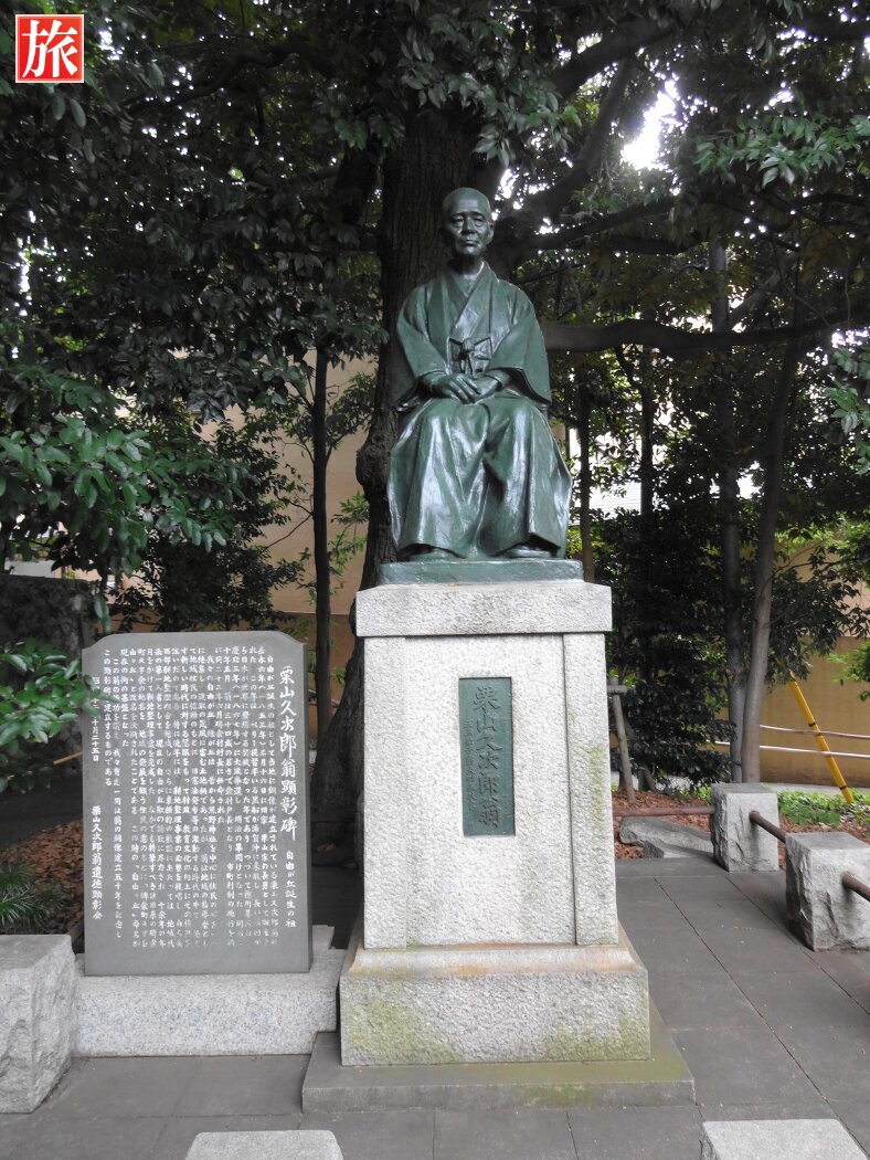 明治時代に碑衾村の村長で耕地整理などに尽力し「自由が丘」の地名の名付け親とされる栗山久次郎翁の銅像と顕彰碑が建つ。手水舎、奥に見えるのは神輿庫。