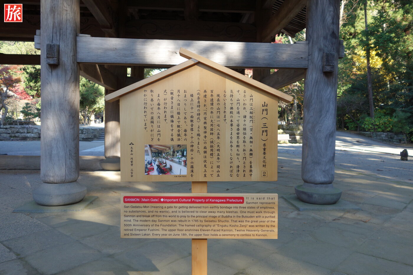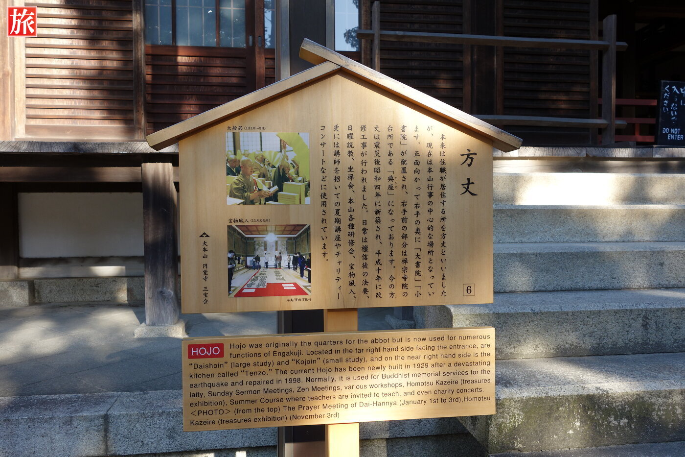JR北鎌倉駅の駅前に円覚寺の総門があり、境内には現在も禅僧が修行をしている道場がある。