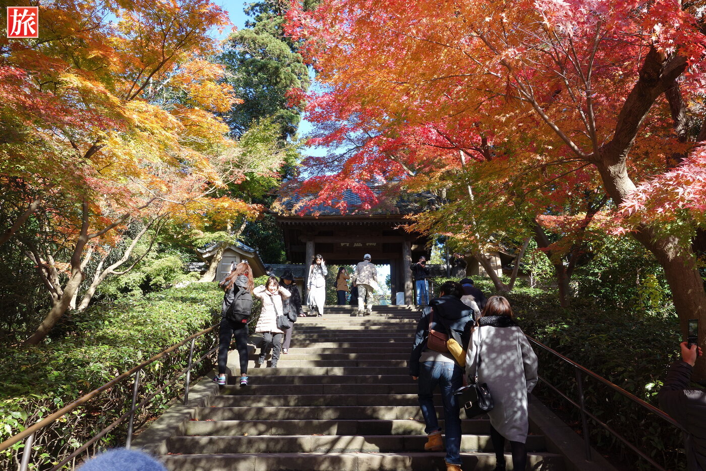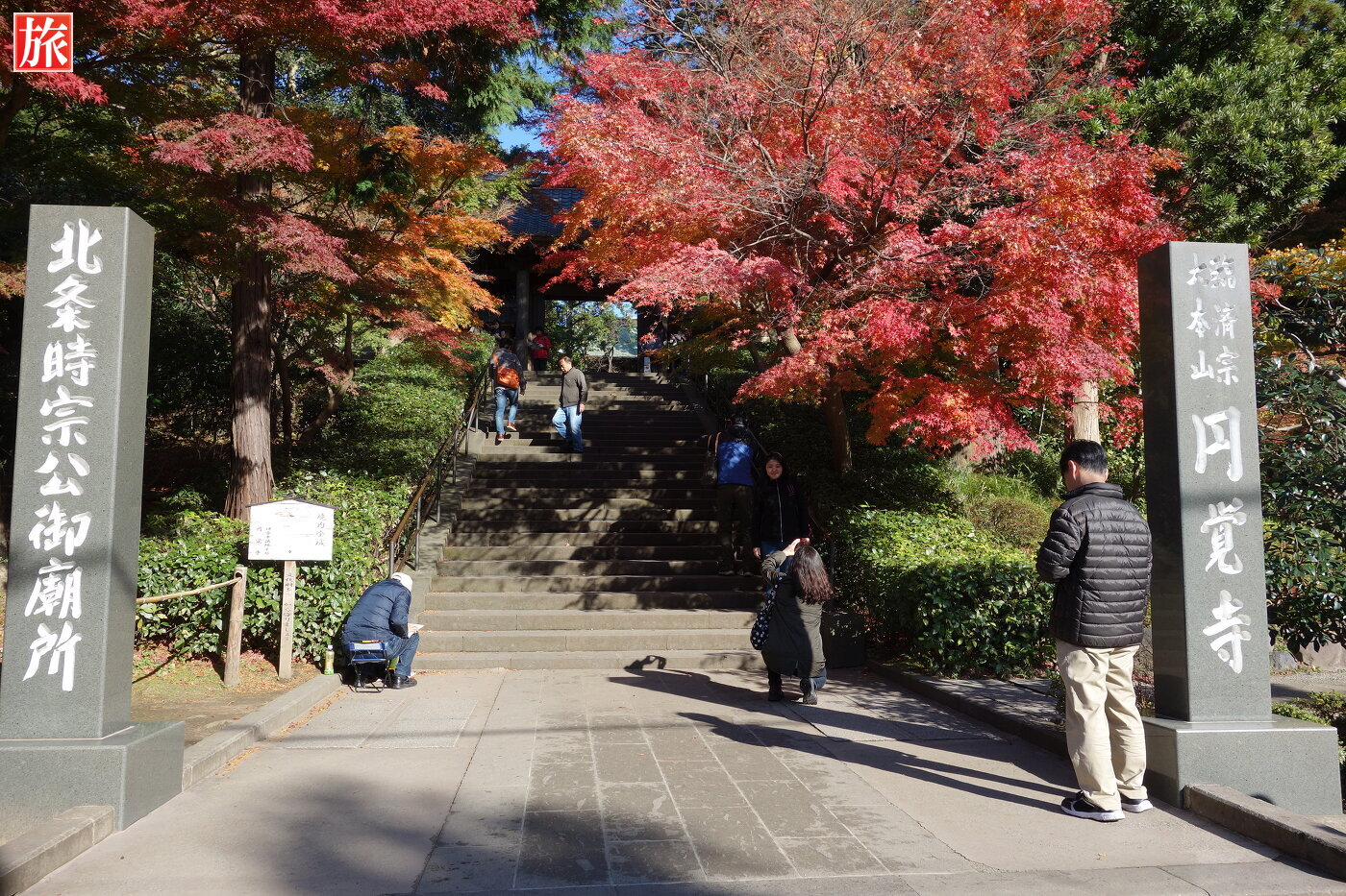 円覚寺入口。総門へ続く石段付近の紅葉が綺麗!