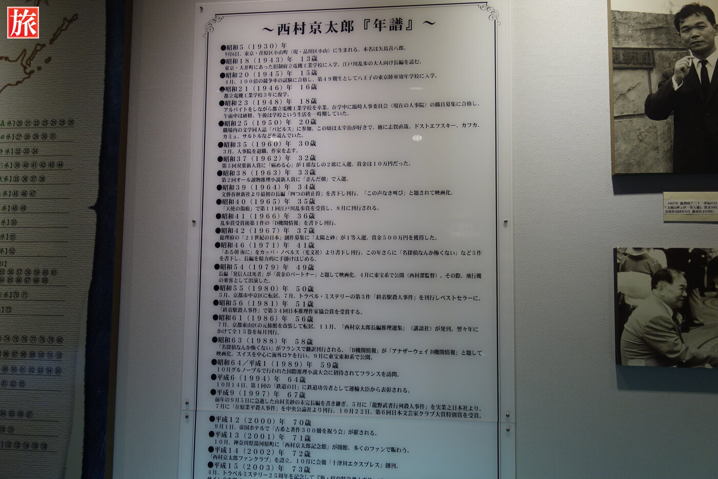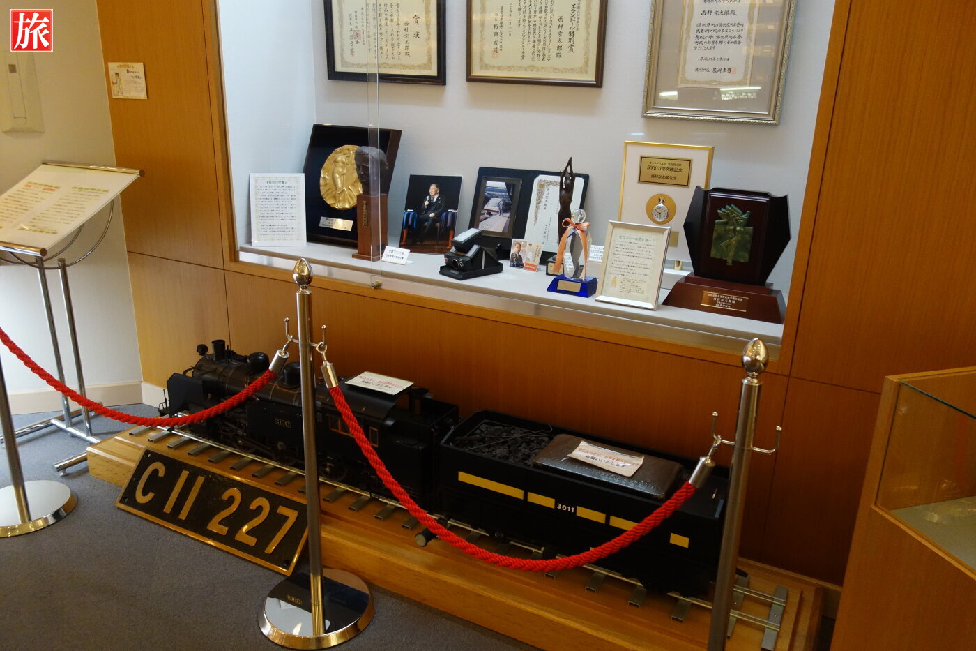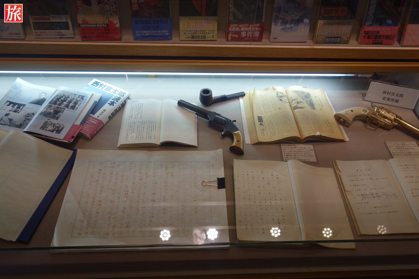 トラベルミステリーの第一人者である西村京太郎の愛用品や500冊を超える作品などを展示。鉄道大ジオラマがあり、電車が行き交う中で繰り広げられる殺人事件を再現している。