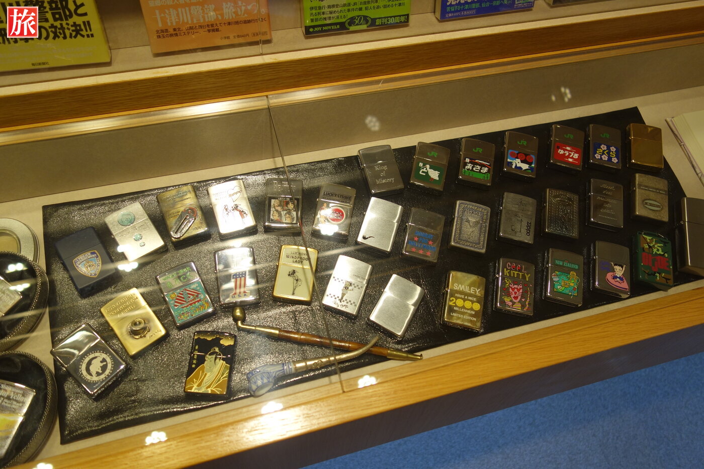 中央に模型があり、周りを500冊を超える作品やSL模型、ジッポライター、原稿、など展示されていました。