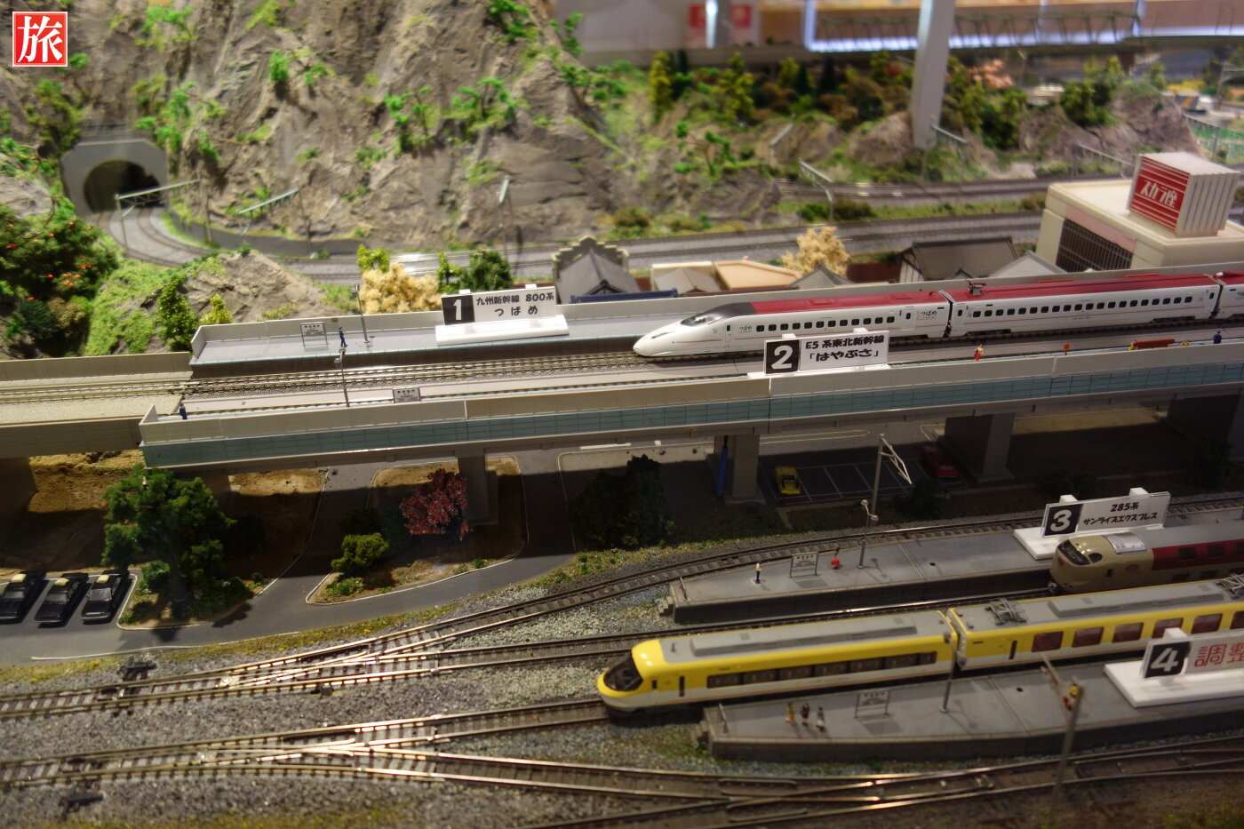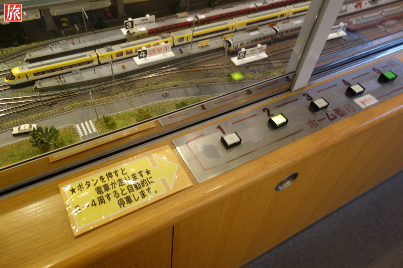 ボタンを押すと電車が走りだすシステムです。当然全部押してやりました。