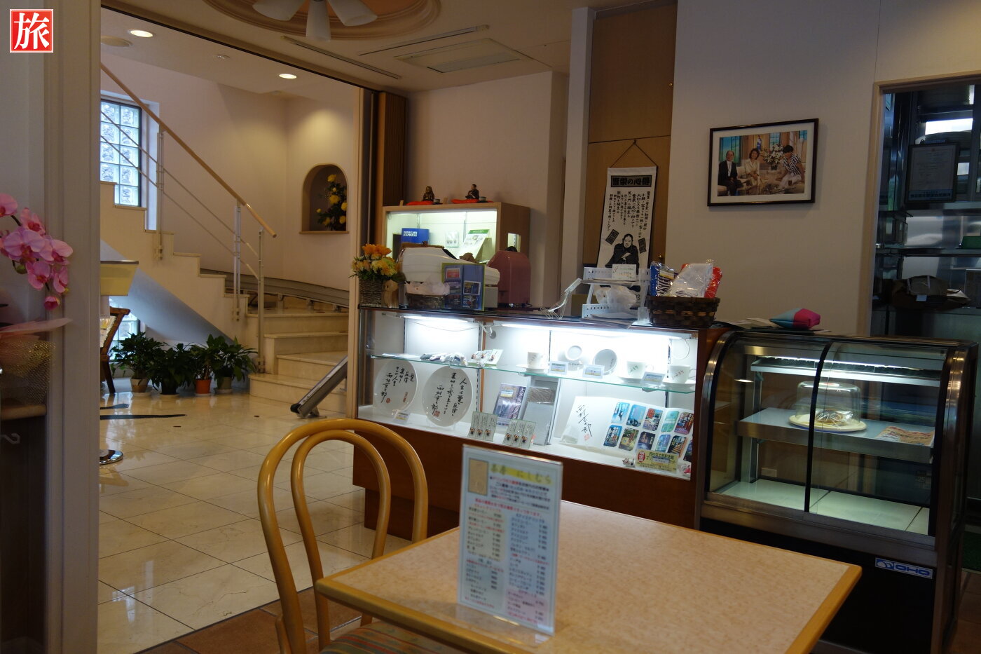 右手の「茶房にしむら」でチケット(ドリンク付き820円)を買い、2階の展示ルームへ。