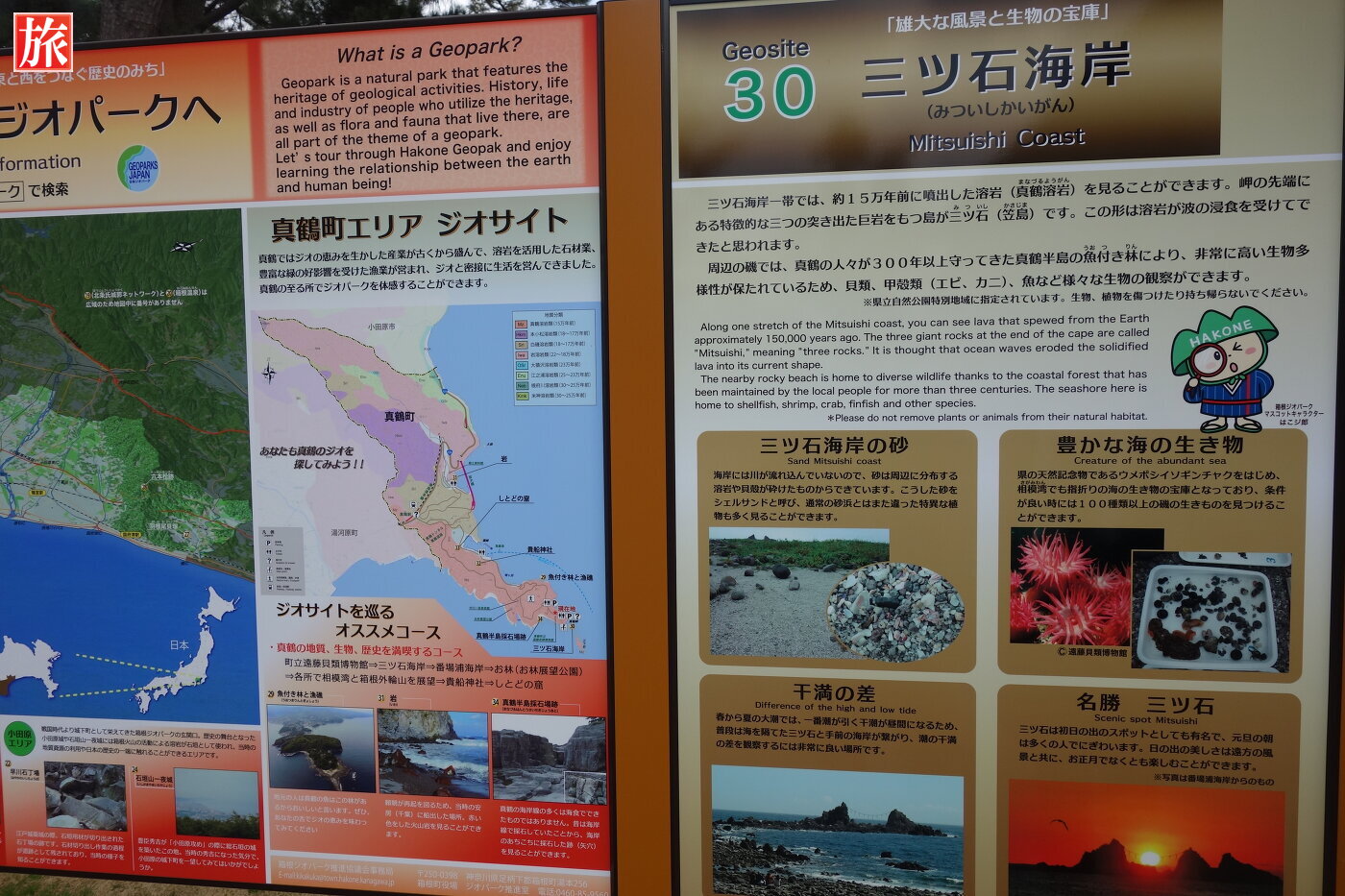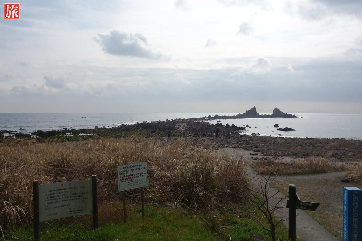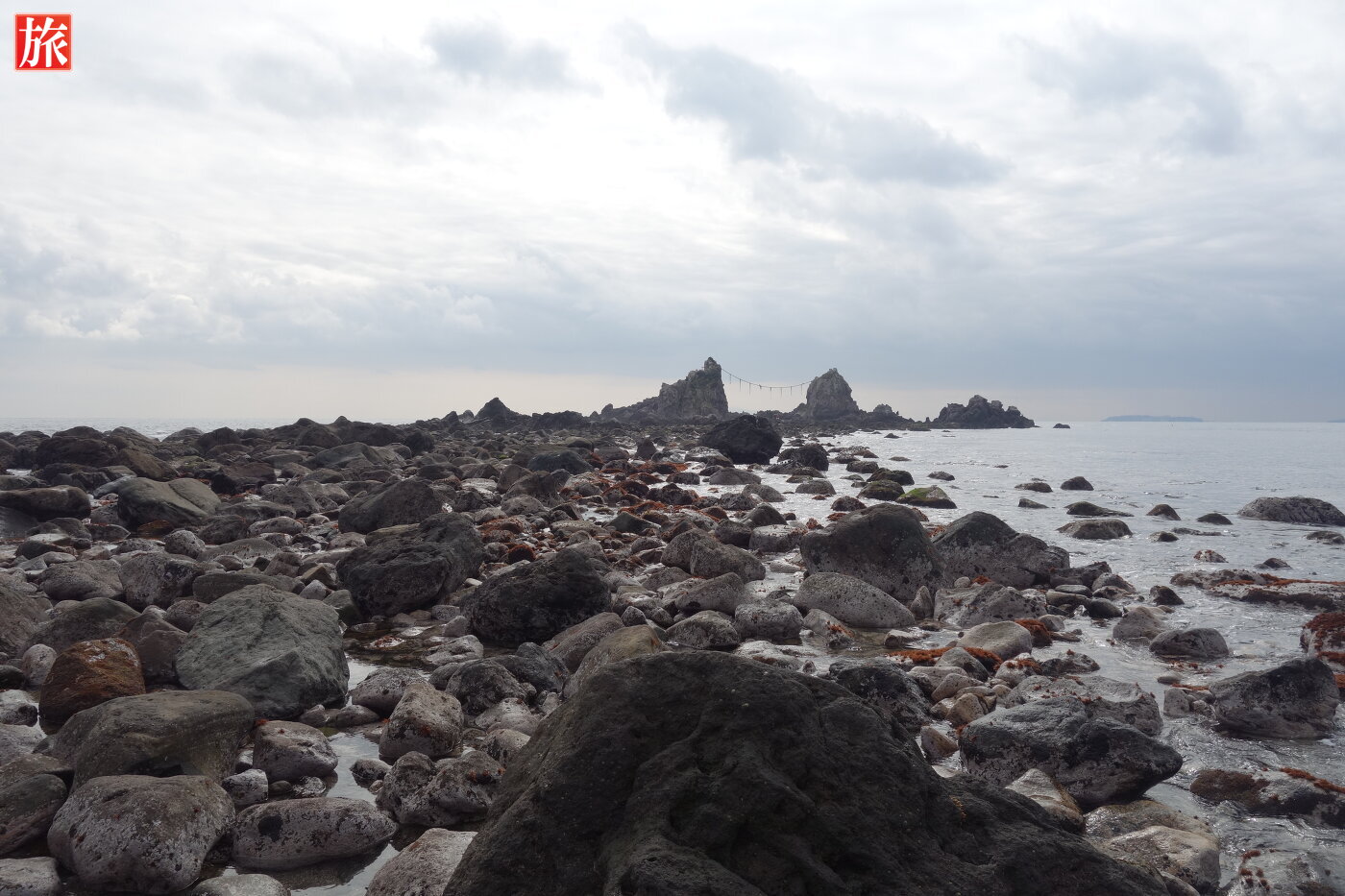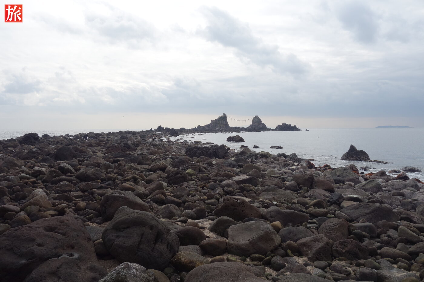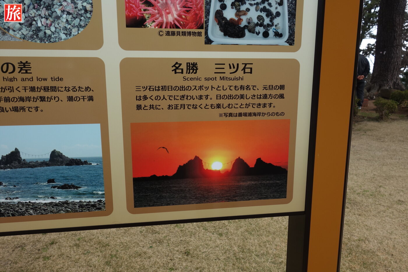 海から上がる日の出の名所、干潮時には三ツ石まで岩礁づたいに歩いて渡れますが満潮で帰れなくなることもあるので、注意が必要です。