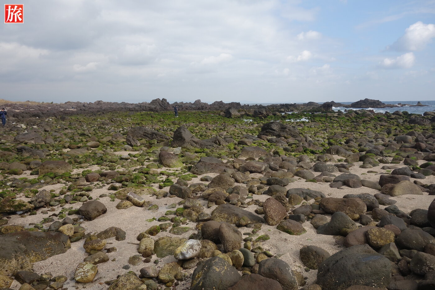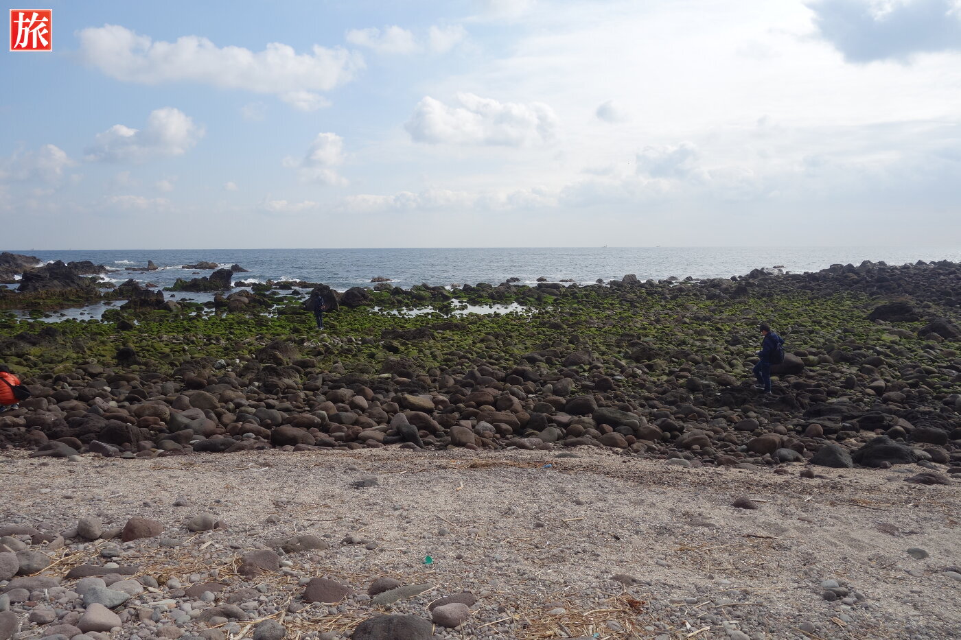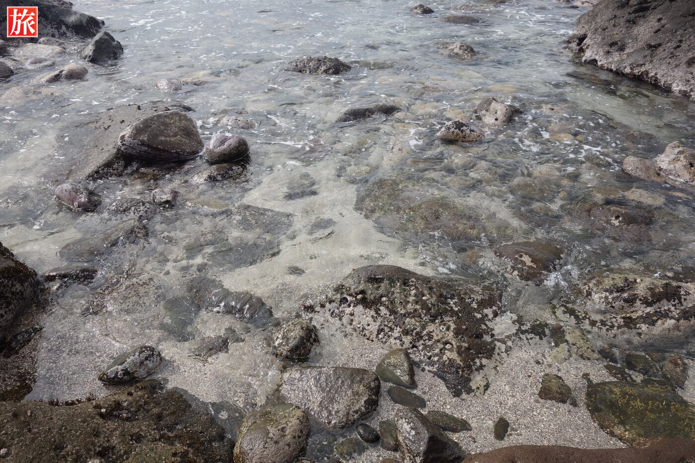 今歩いている岩場も、満潮になると海に沈むそうです。