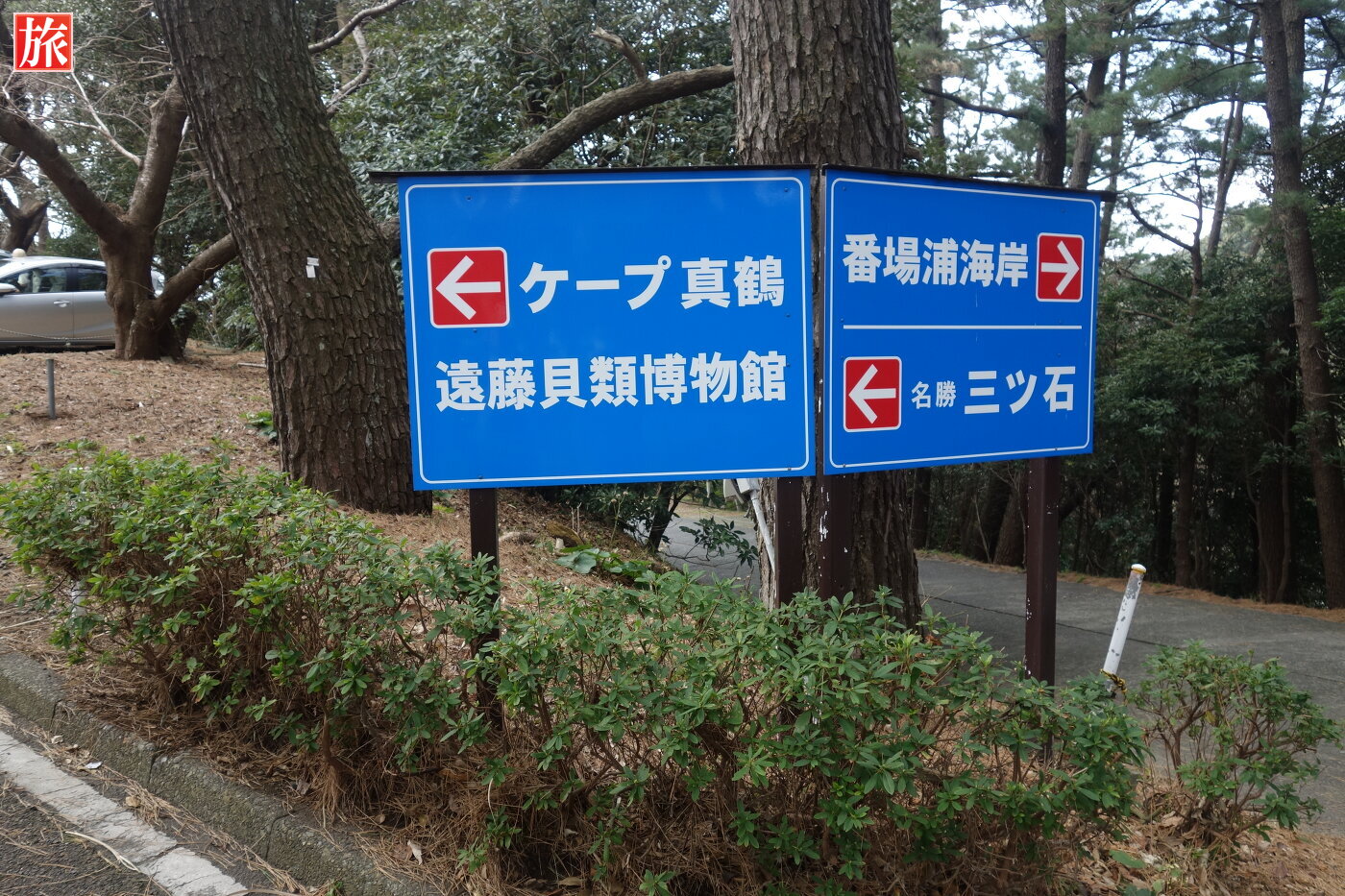 バスも1時間に2本あります。貝類博物館はスルーして目的地の名勝三ツ石へ。