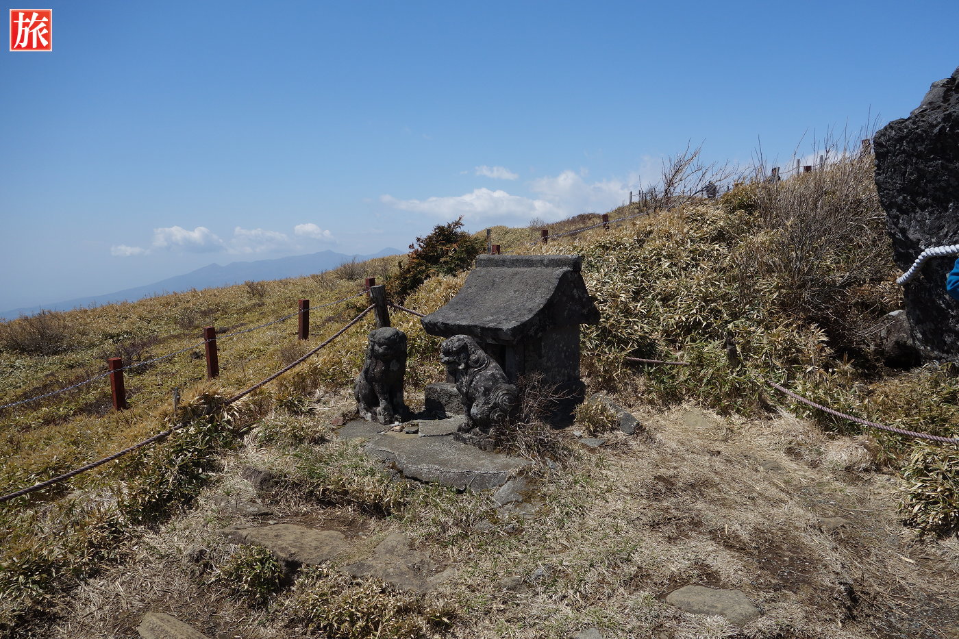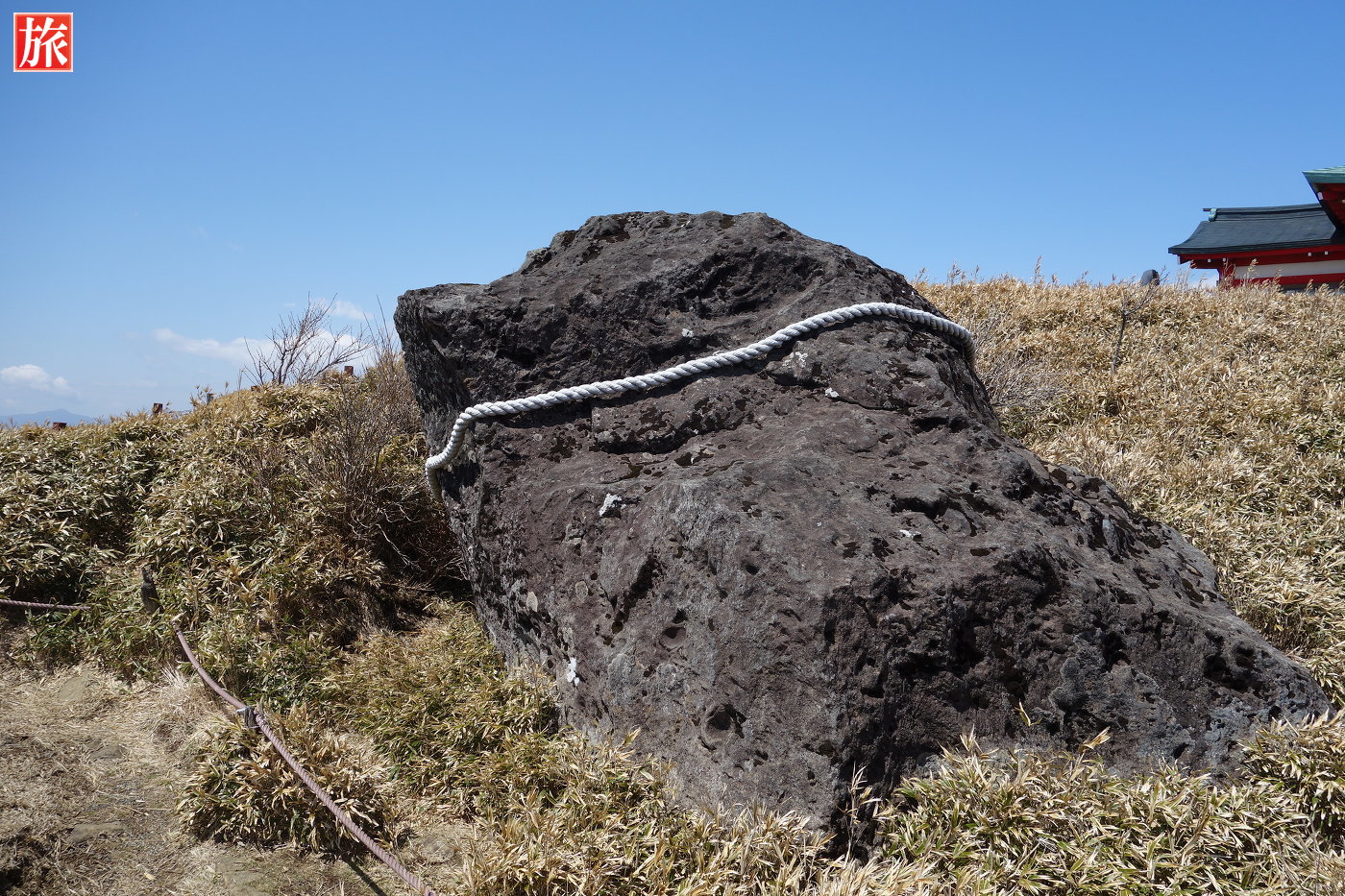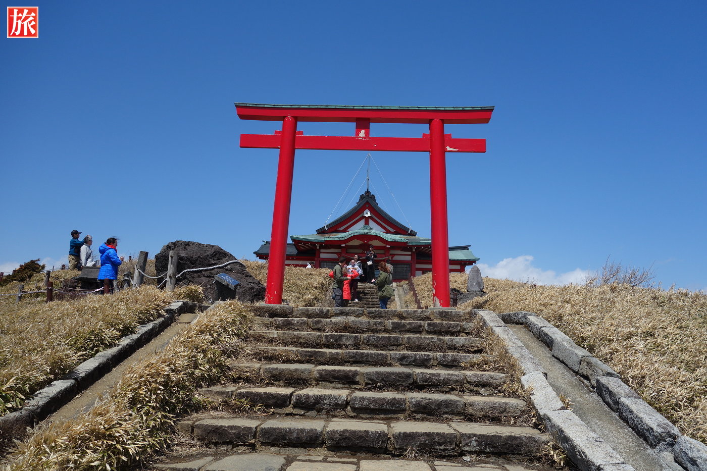 箱根神社元宮は、神体山、霊峰神山を臨む拝殿で、古代祭祀(山岳信仰)が行われた駒ヶ岳山頂にある箱根神社の奥宮。その起源は、今から凡そ2400年前、人皇五代孝昭(こうしょう)天皇の御代、聖占仙人(しょうぜんしょうにん)が、神山に鎮まります山神の威徳を感應し、駒ヶ岳山頂に神仙宮を開き、次いで利行丈人、玄利老人により、神山を天津神籬(あまつひもろぎ)とし、駒ヶ岳を天津磐境(あまついわさか)として祭祀したのに始まるといわれています。