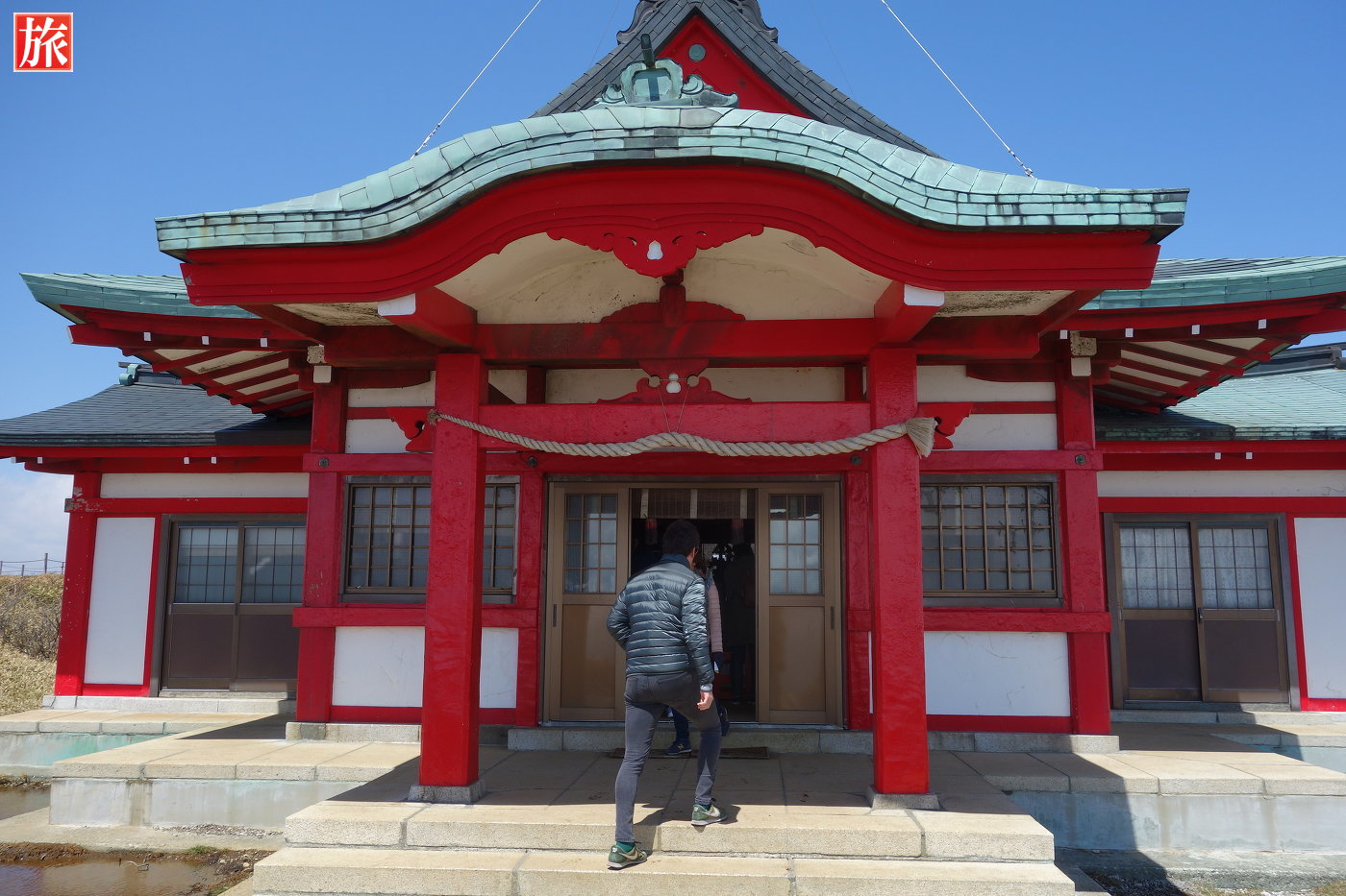 箱根神社元宮へ到着。風がとても強く吹いていました。