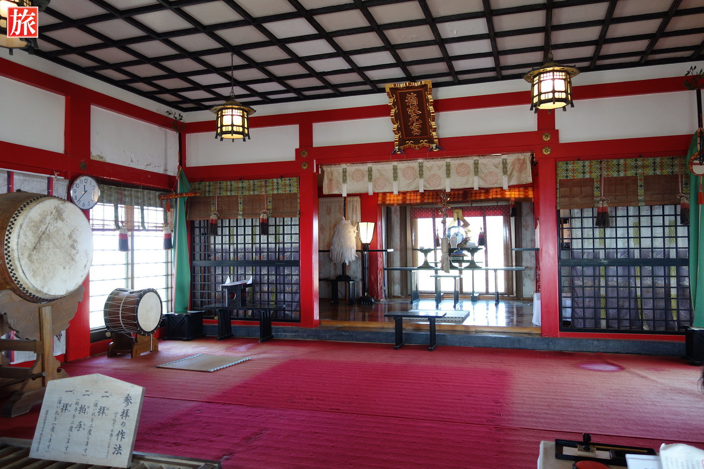 鳥居をくぐるった先にあるのが元宮の拝殿です。白馬に乗って、神様が降臨された石と言われる馬降石(ばこうせき)。