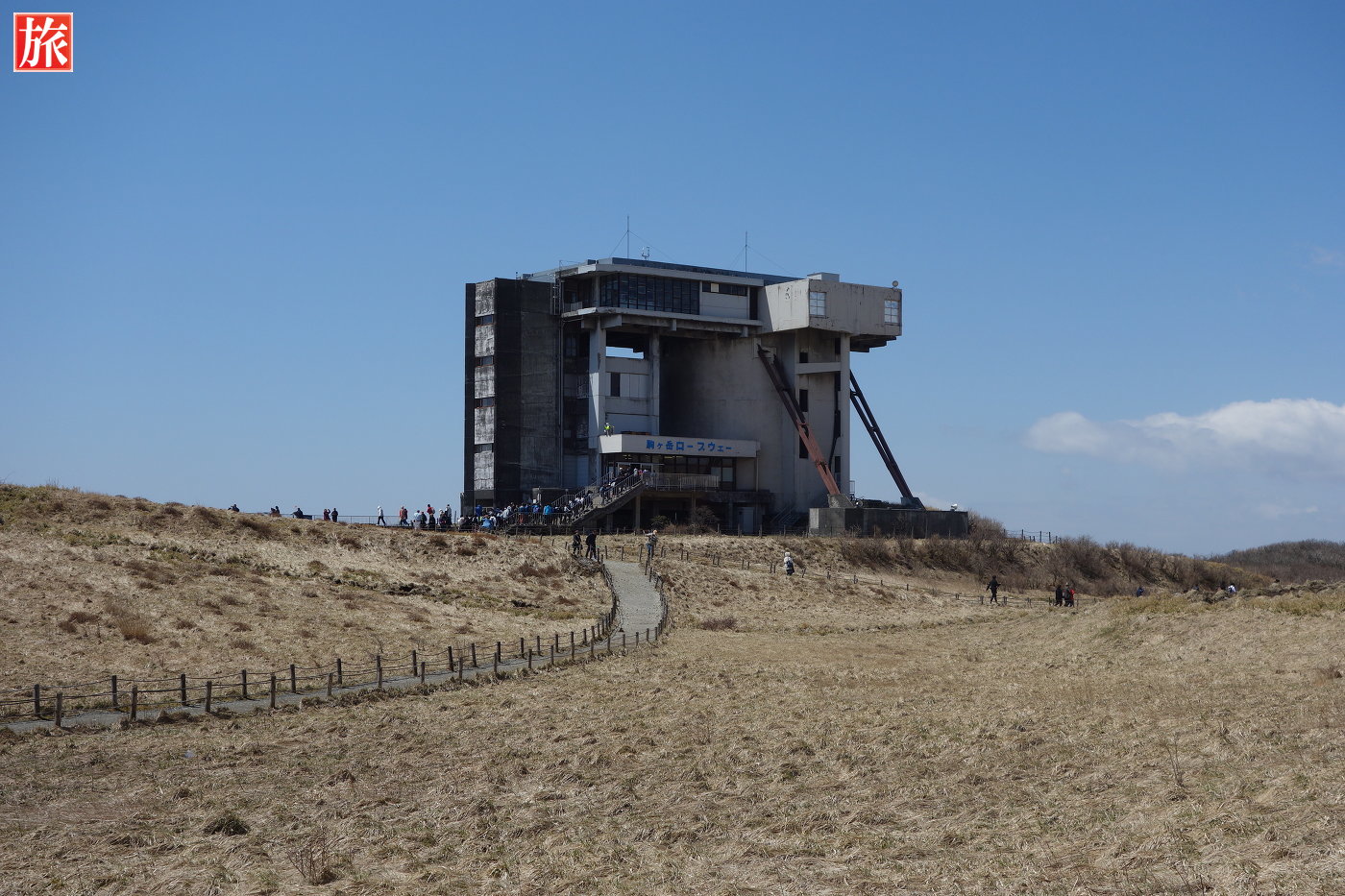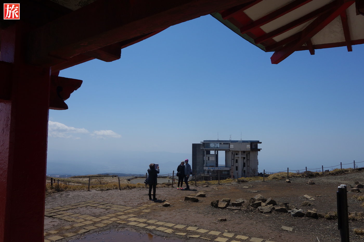 箱根神社元宮へ向かう唯一のアクセス手段、駒ヶ岳ロープウェイ。箱根園駅。駒ヶ岳山頂駅から元宮を望む。