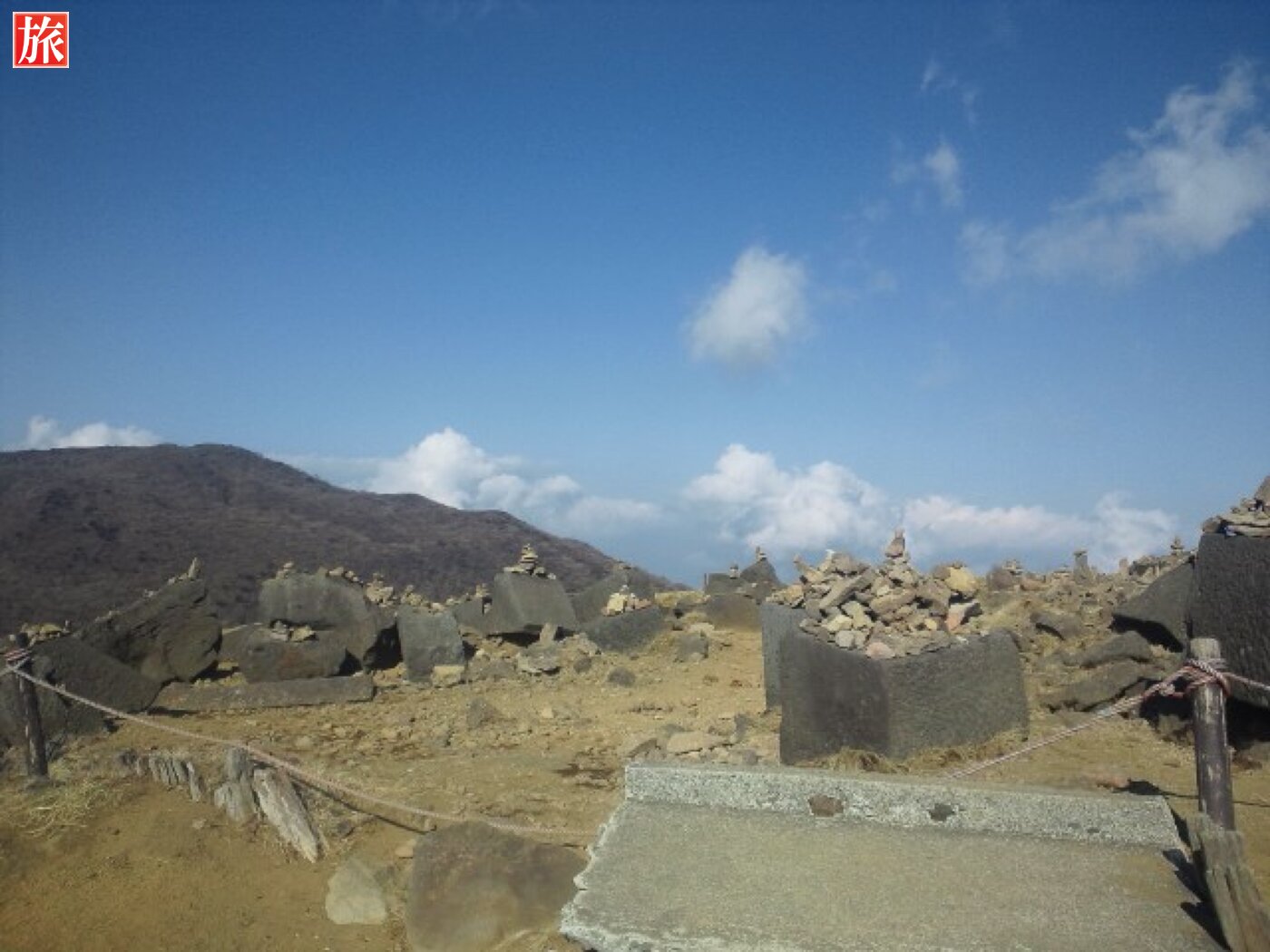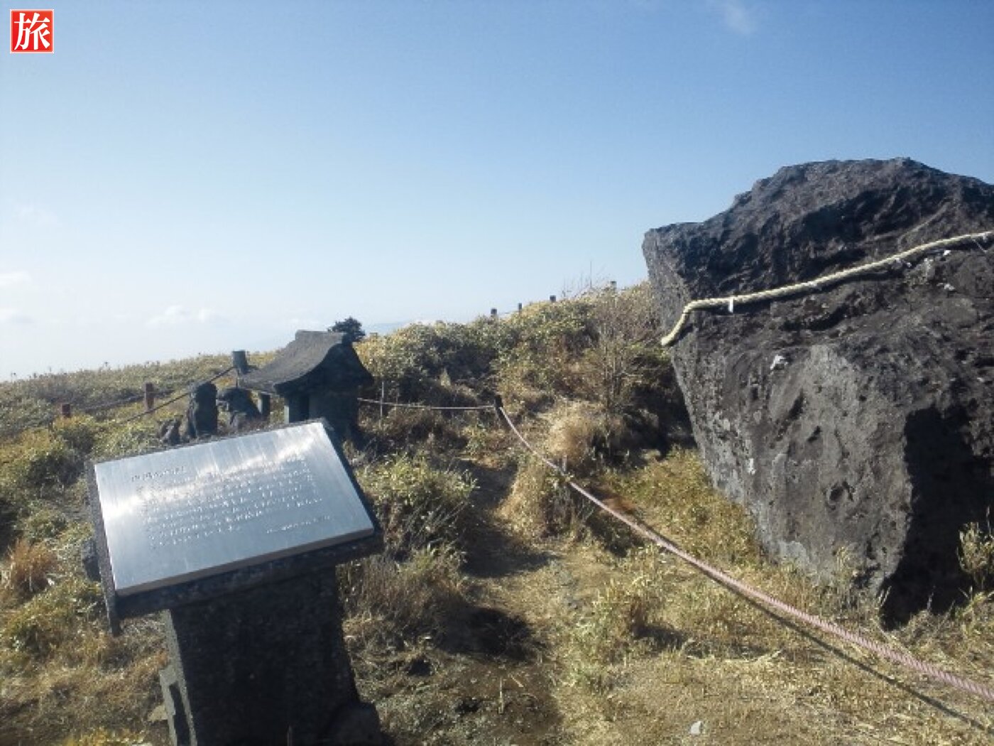 鳥居の左手、元宮手前にある磐座・※馬降石(ばこうせき)。駒ヶ岳山頂(標高1357m)。駒ヶ岳山頂付近の様子。岩垣・古代祭祀遺跡、ごつごつした岩が沢山!