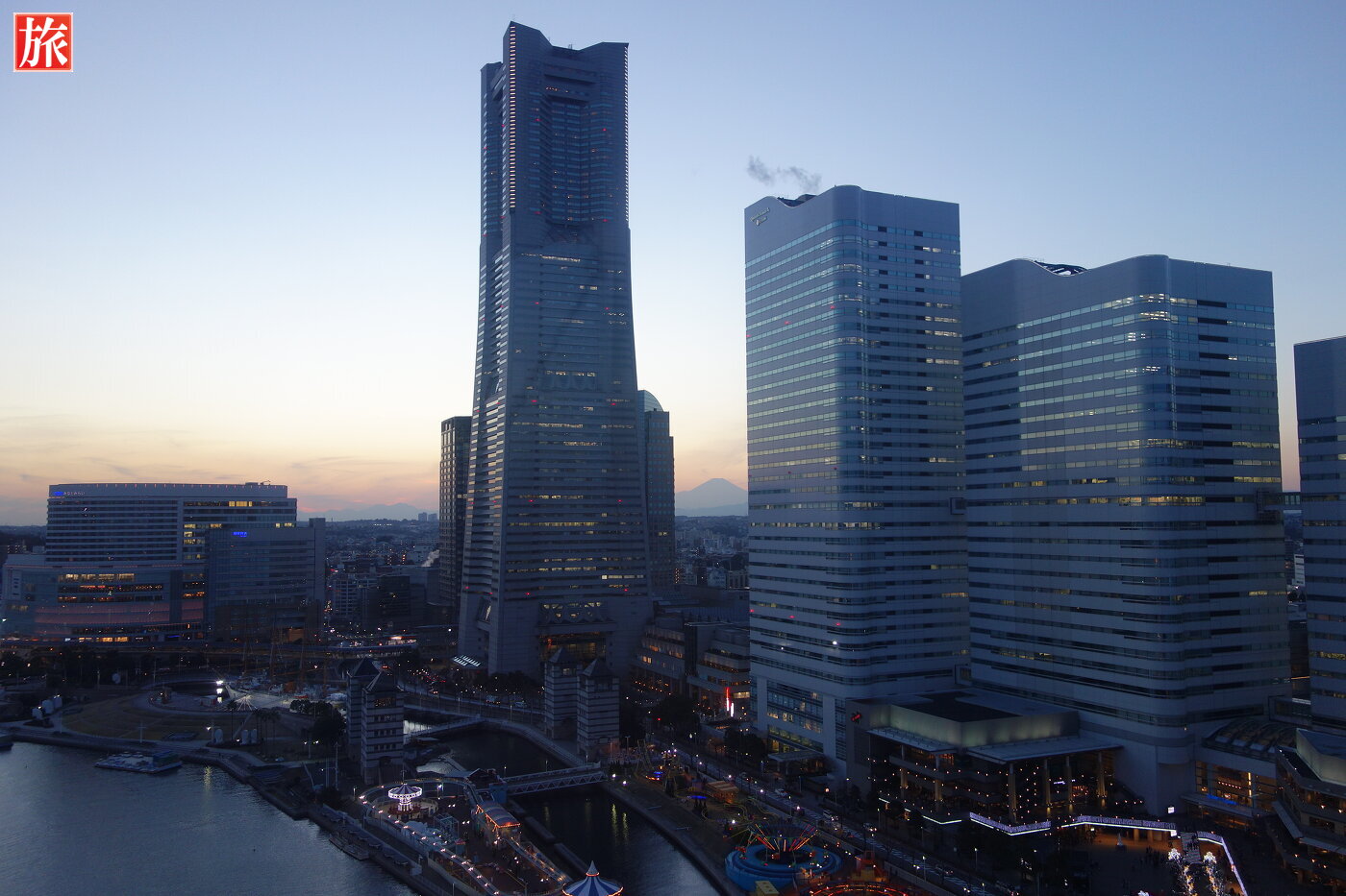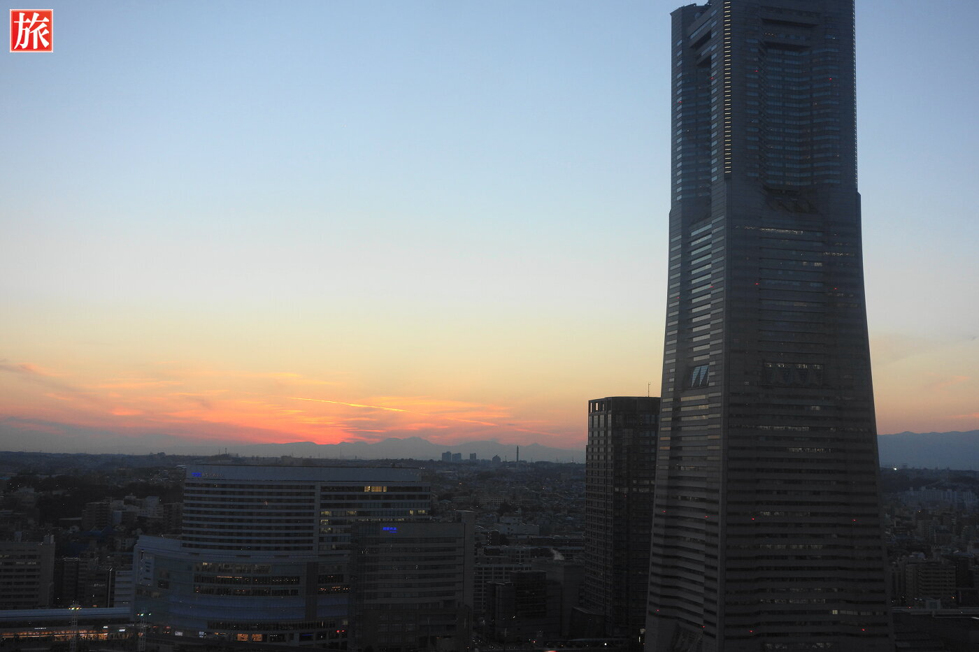 横浜ランドマークタワー・クイーンズタワー方向を望む。合間に富士山が見えます。
