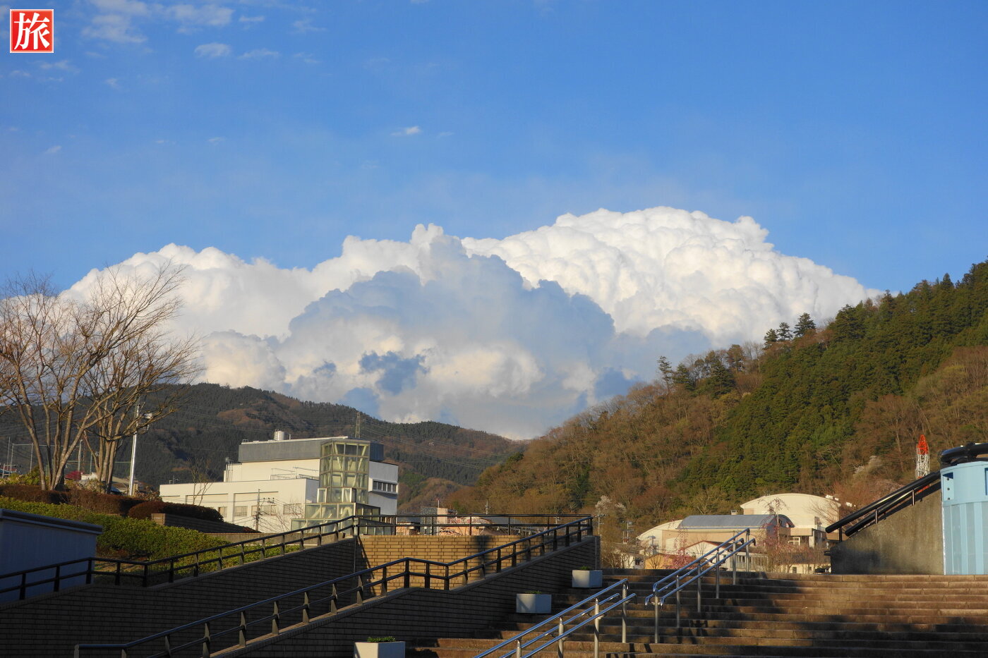 賑わいの広場付近の様子です。この時期には早い入道雲がでていました。