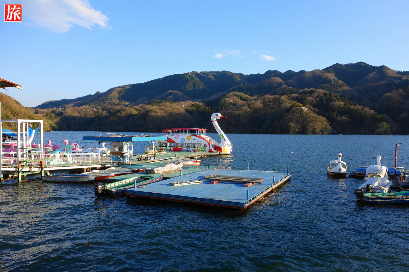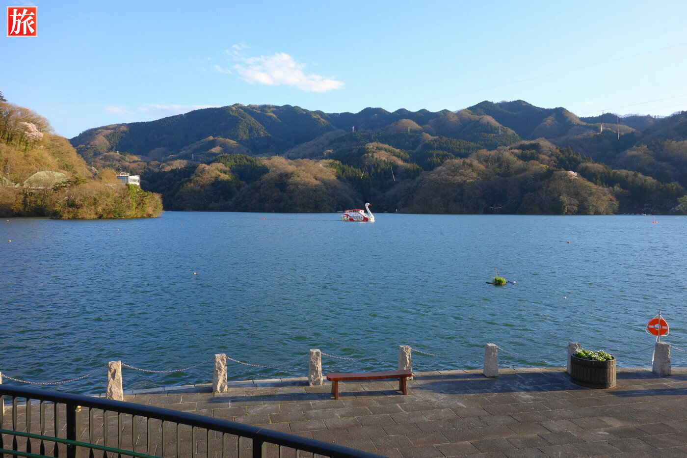 桜が綺麗。湖にはスワン丸の遊覧船が運行していました。