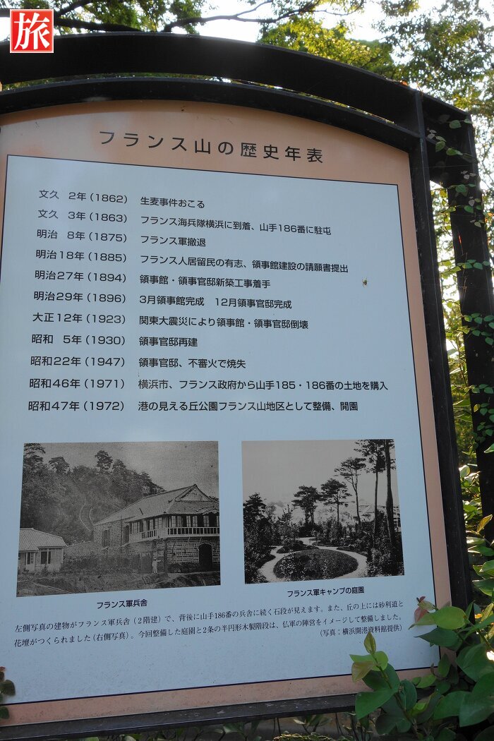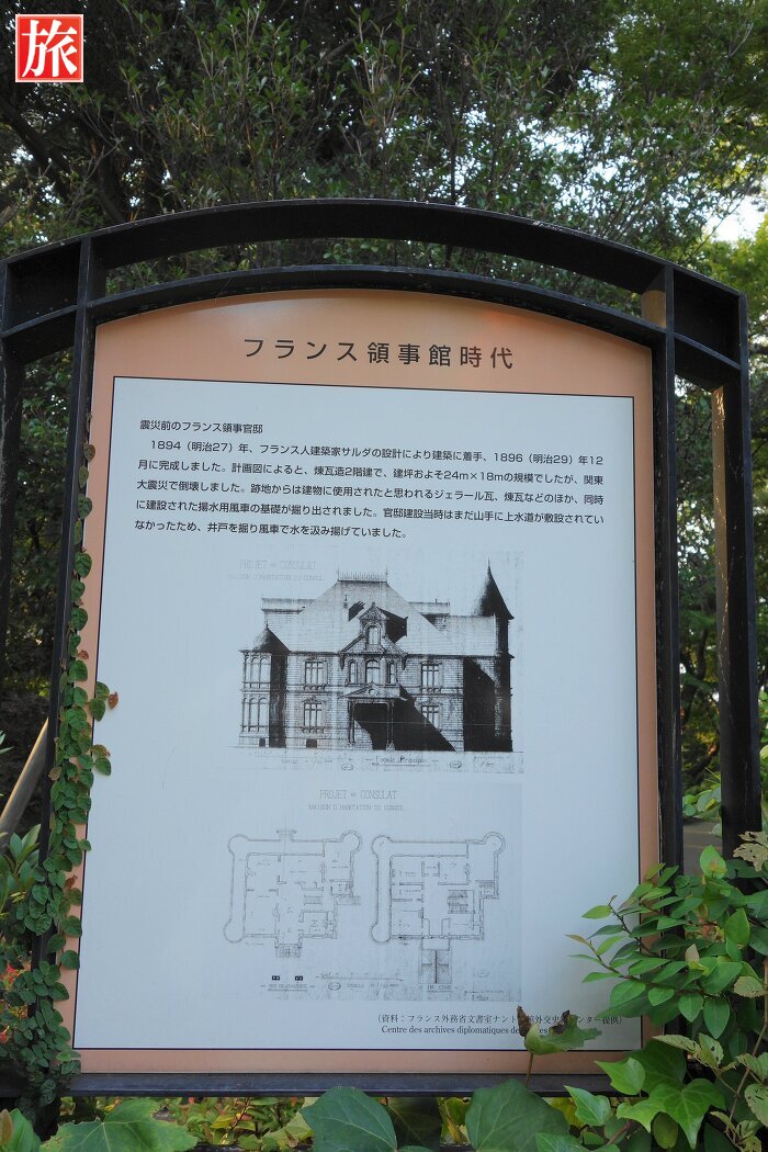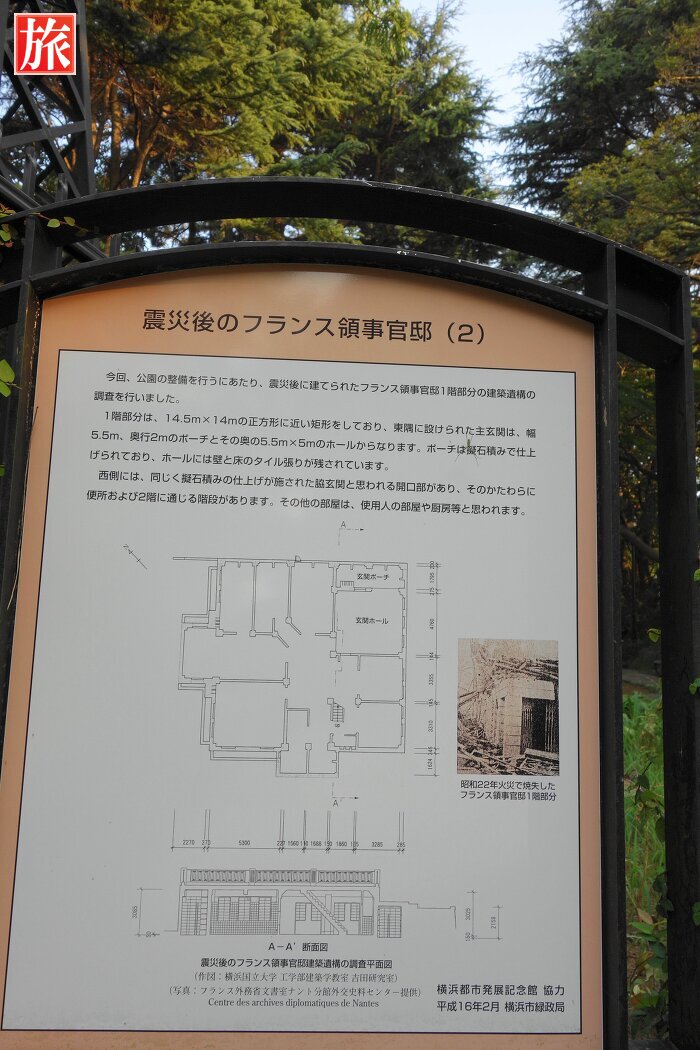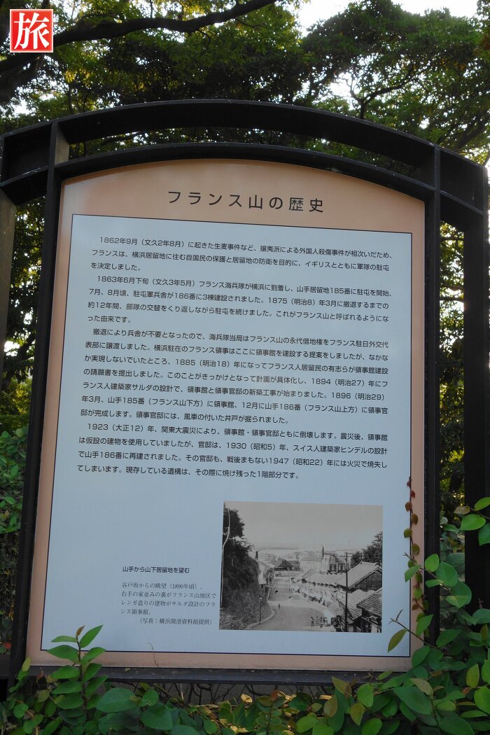 フランス領事館遺構。公園北西側の「フランス山」付近。フランス領事館が置かれていた跡地「フランス山」区域です。