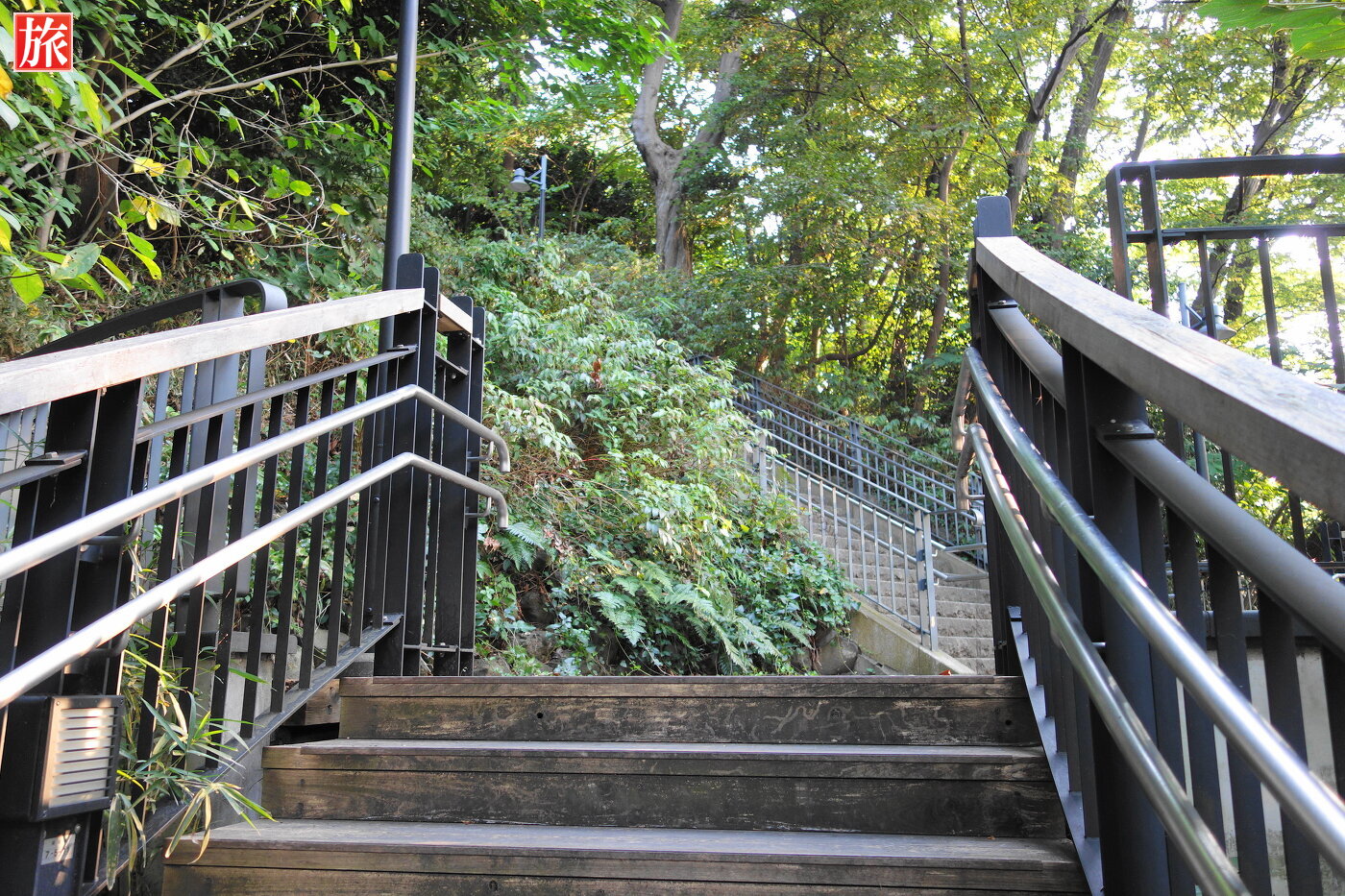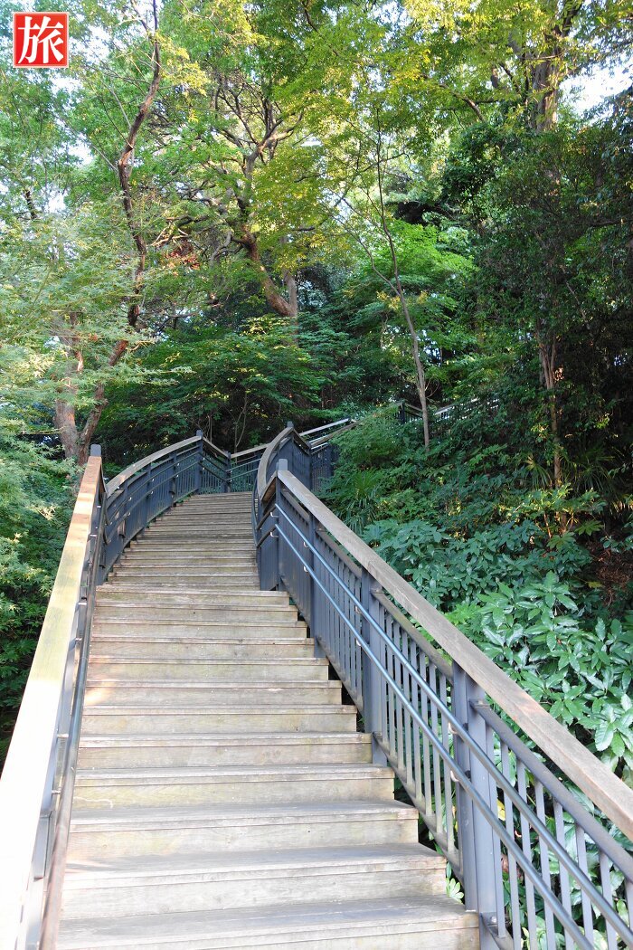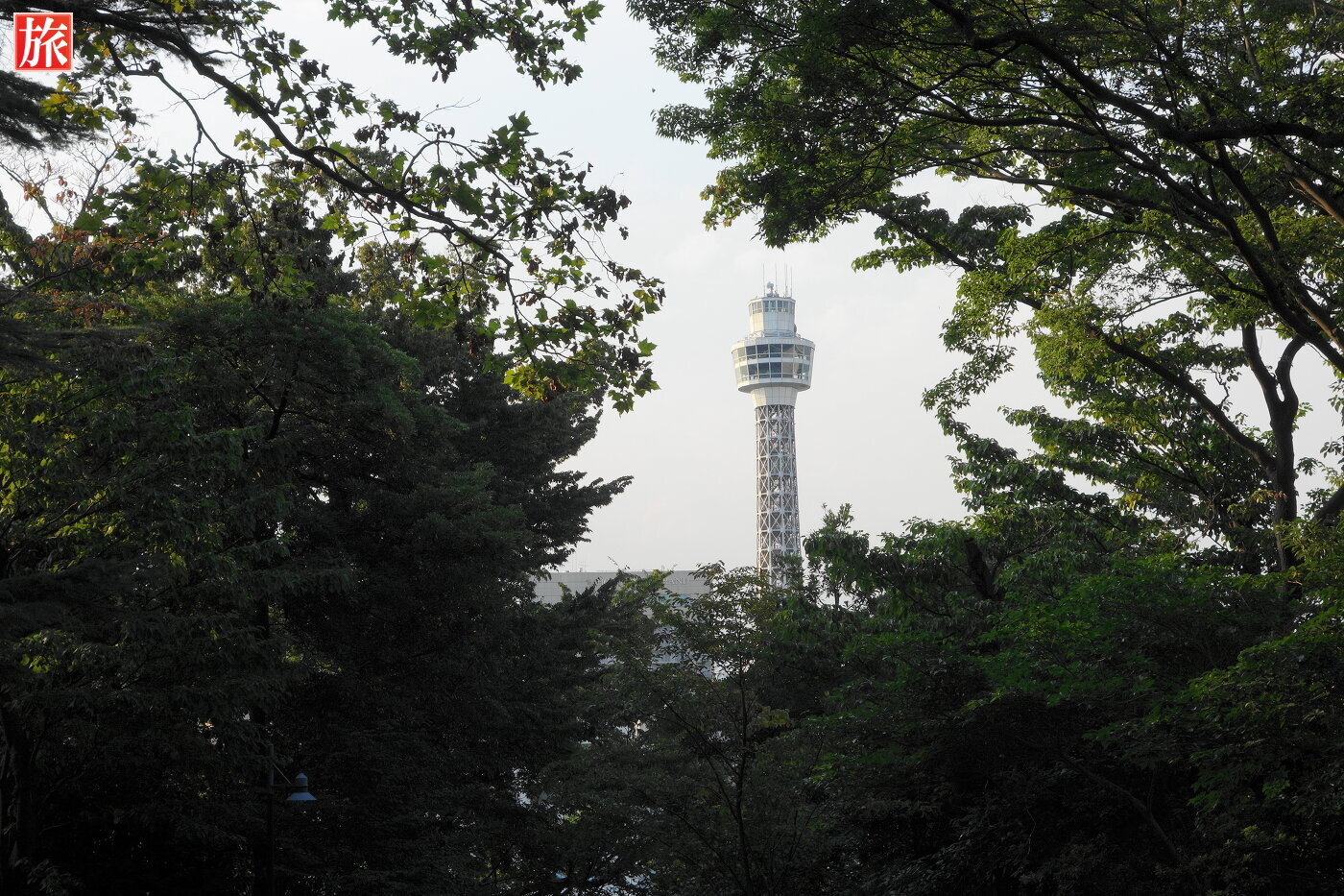 入口を過ぎ階段を上って行きます。途中振り返るとマリンタワーが見えます。
