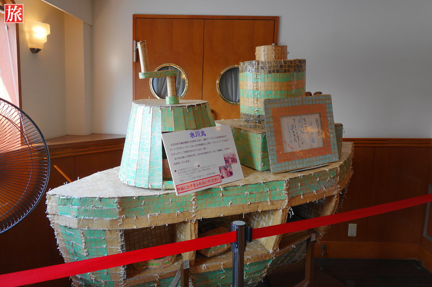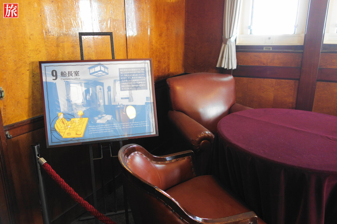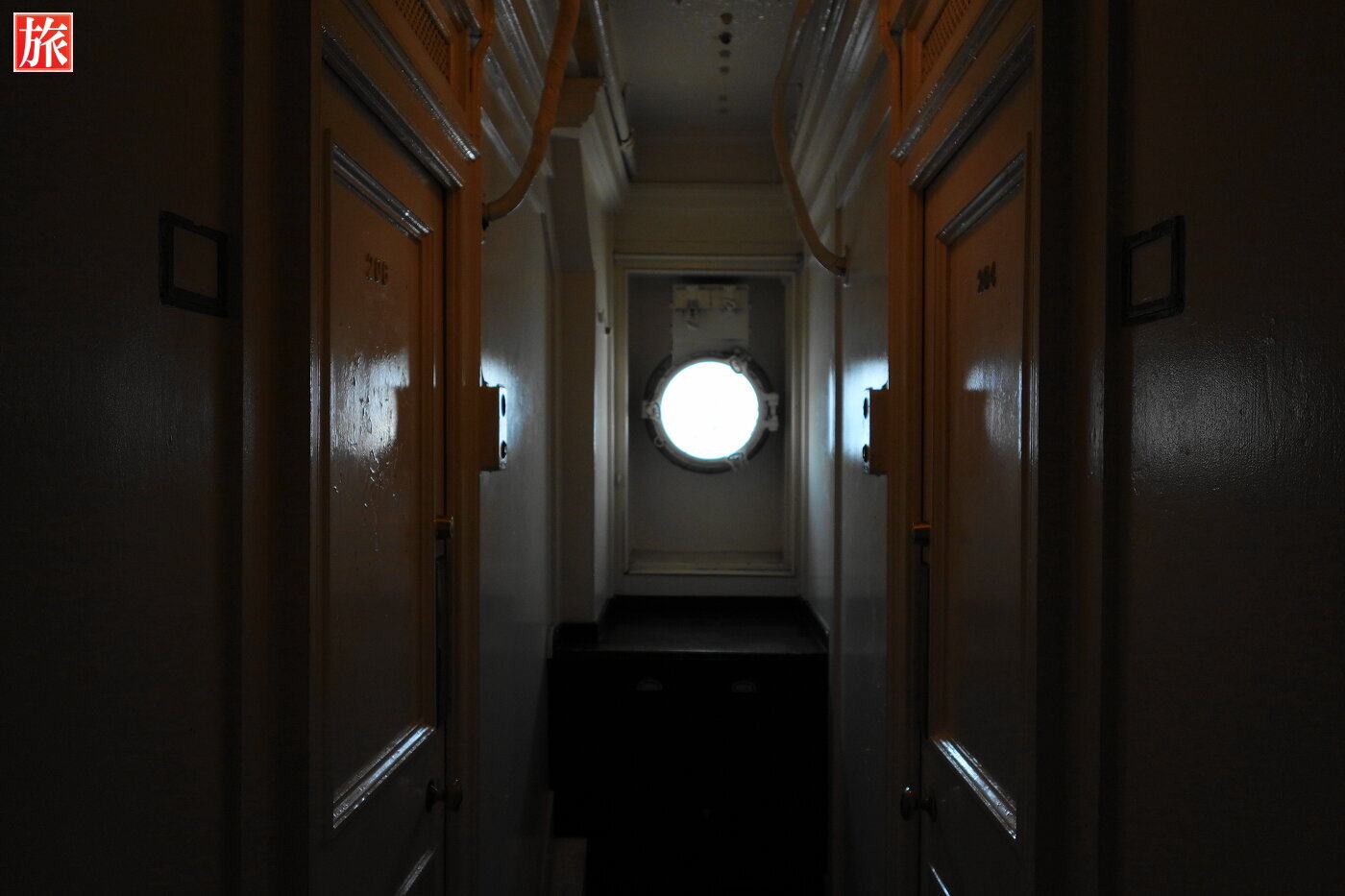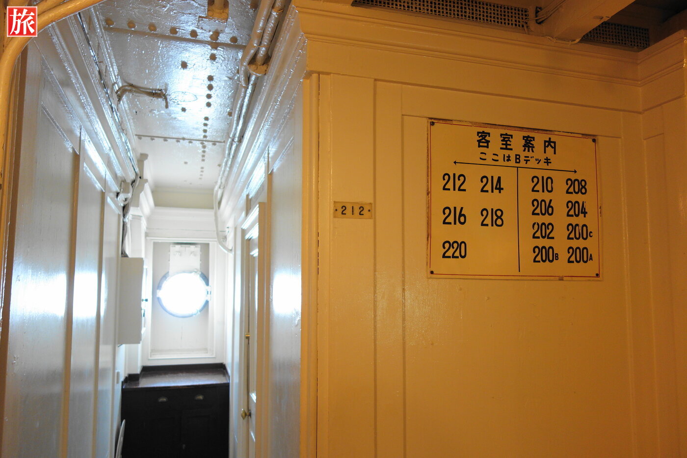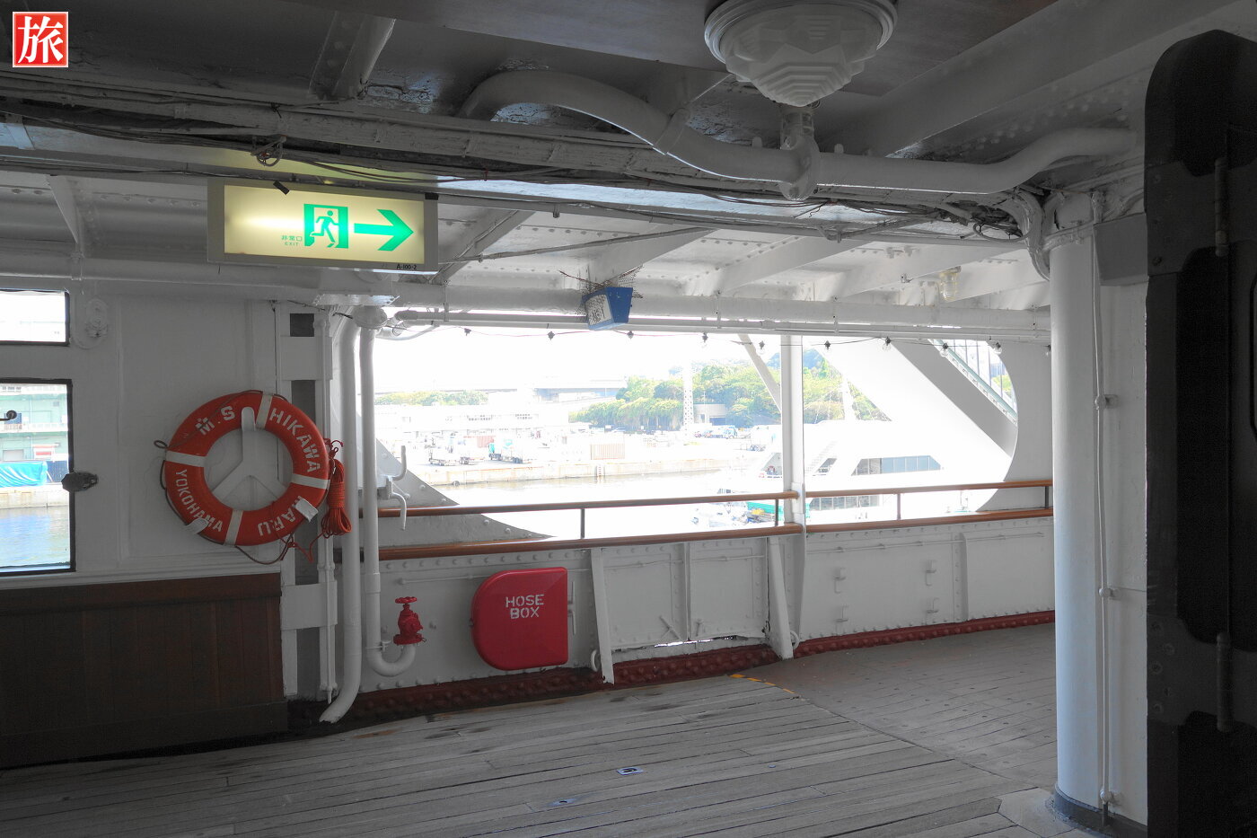 サイドデッキ。食堂入口の階段。「シアトル航路の旅」展示室。