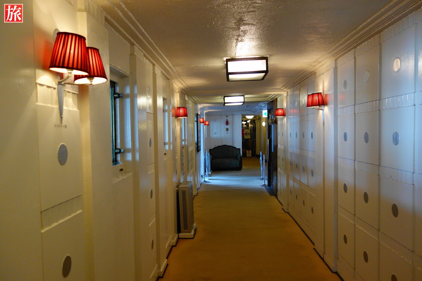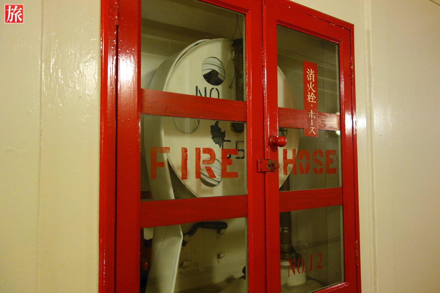 消火栓・ホース。丸い窓が船らしい。演奏、ショーが行われた一等船客専用のダイニングサロン。一等児童室。
