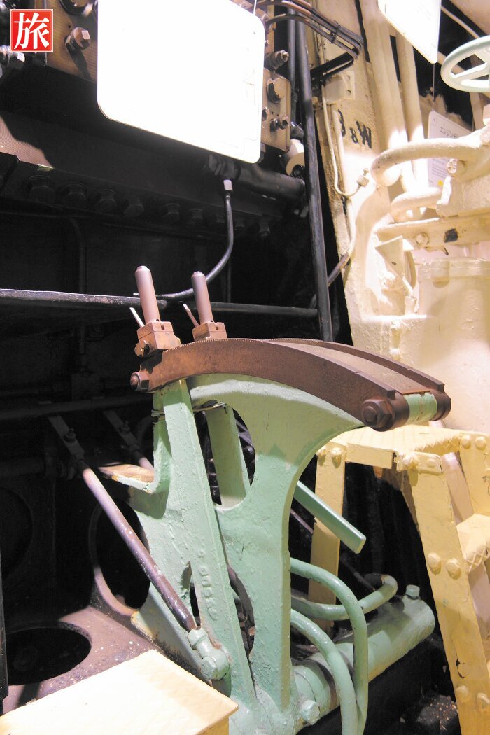 一番右の写真はエンジンを動かす操作ハンドルです。右舷と左舷に2つありレバーを奥に押し起動空気を開きこの操作のみでエンジンを動かしていました。