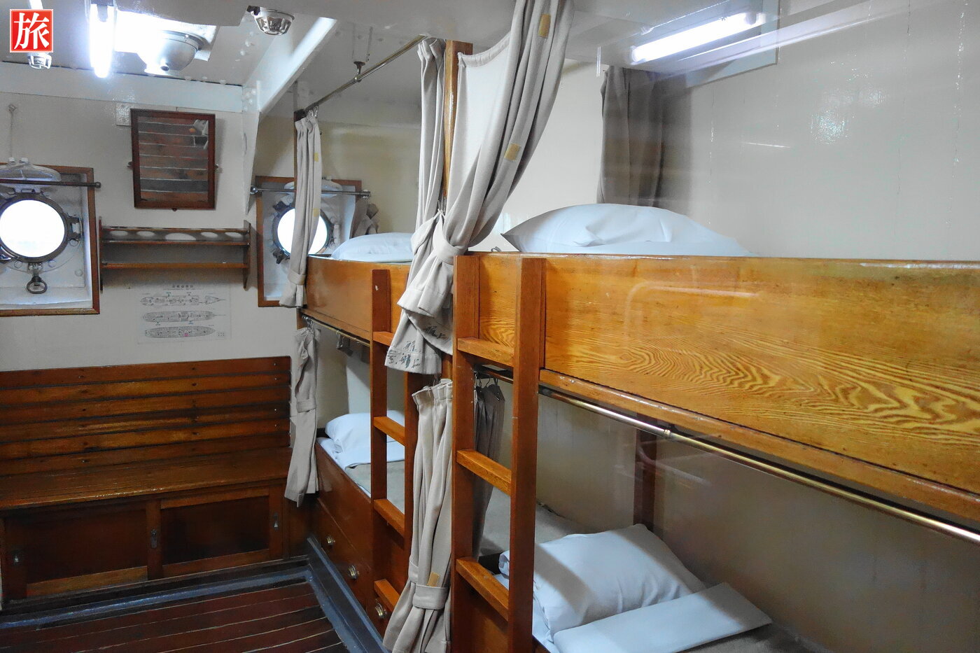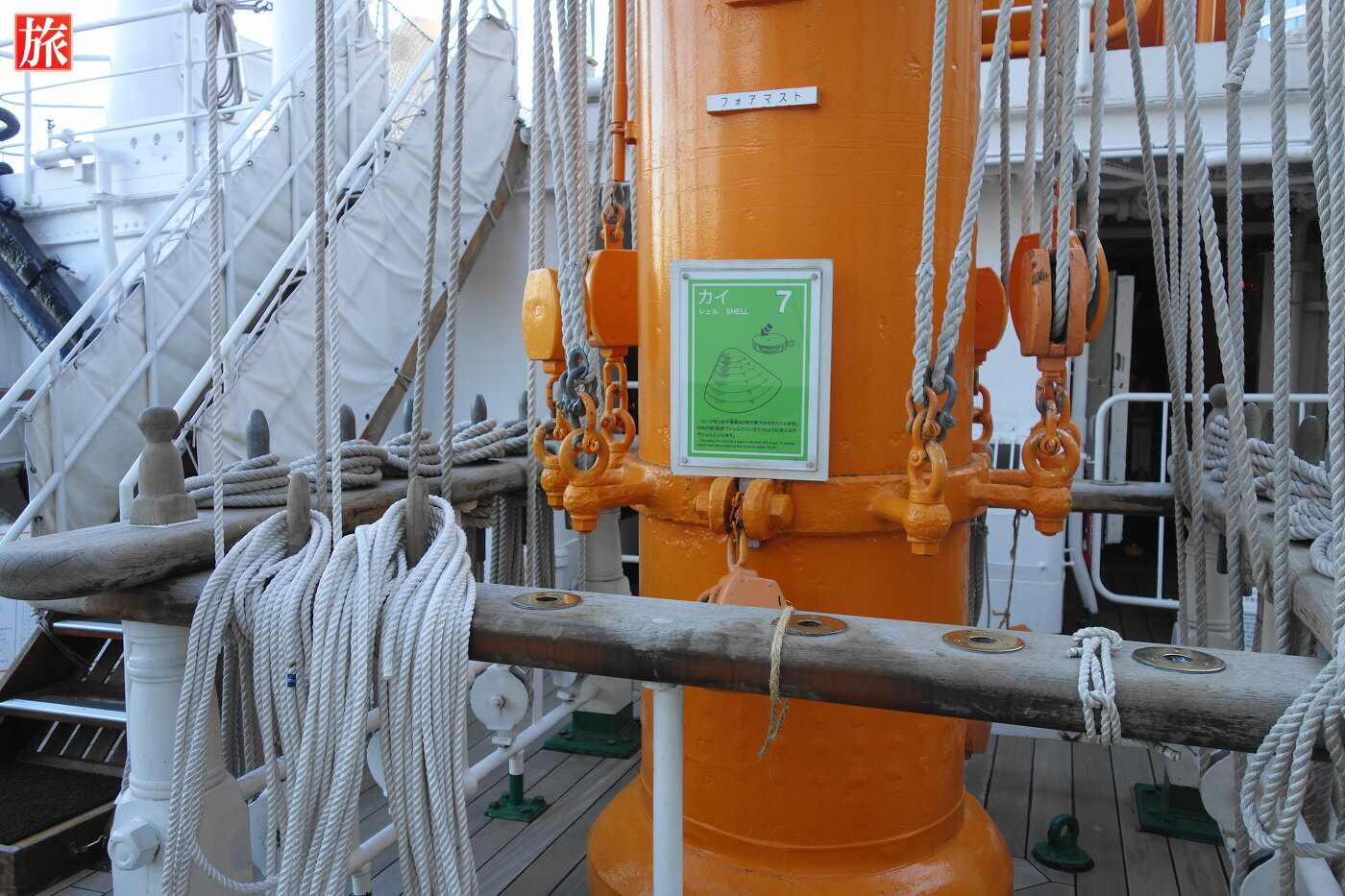 フォアマスト。キセル型通風筒。実習生の部屋(8人部屋)。