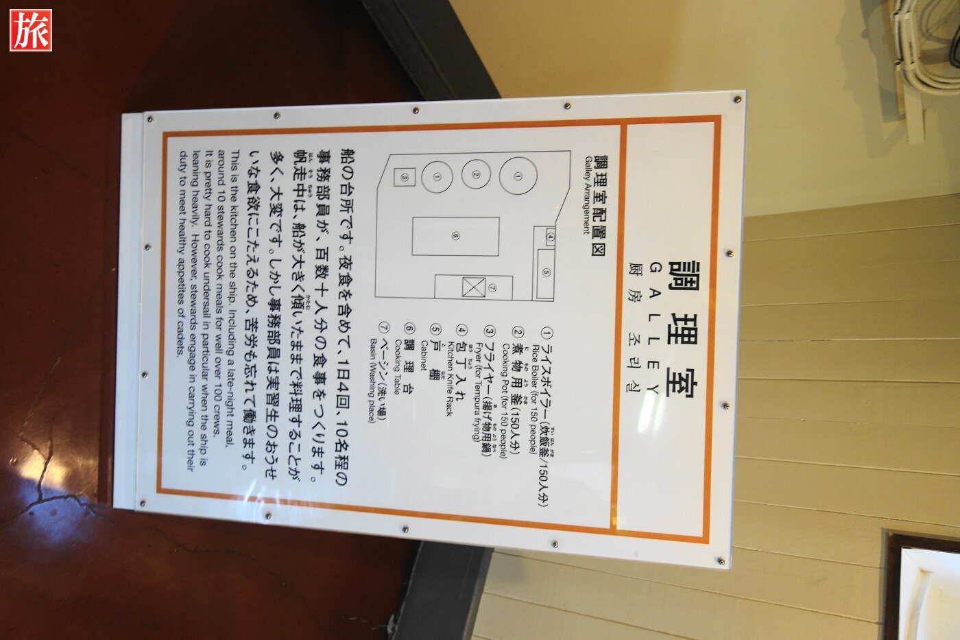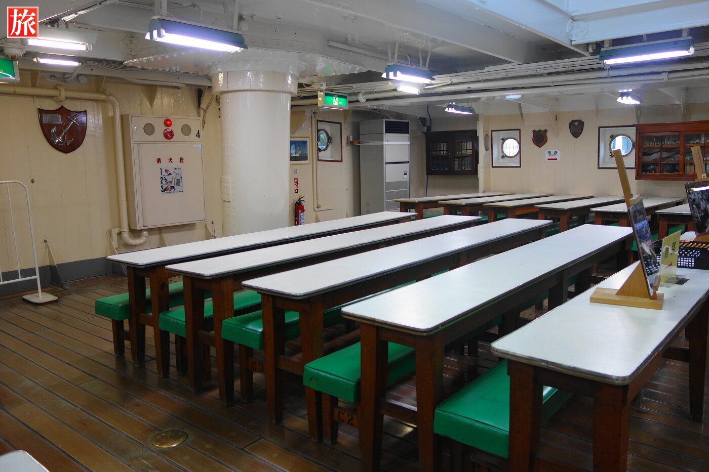 診療時間の看板。医務室。機関部食堂。