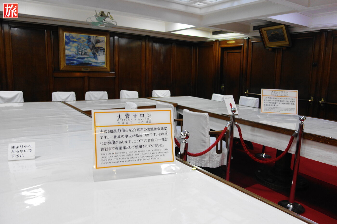 一等航海士室。通信長室。士官サロン。一番奥中央が船長の席。