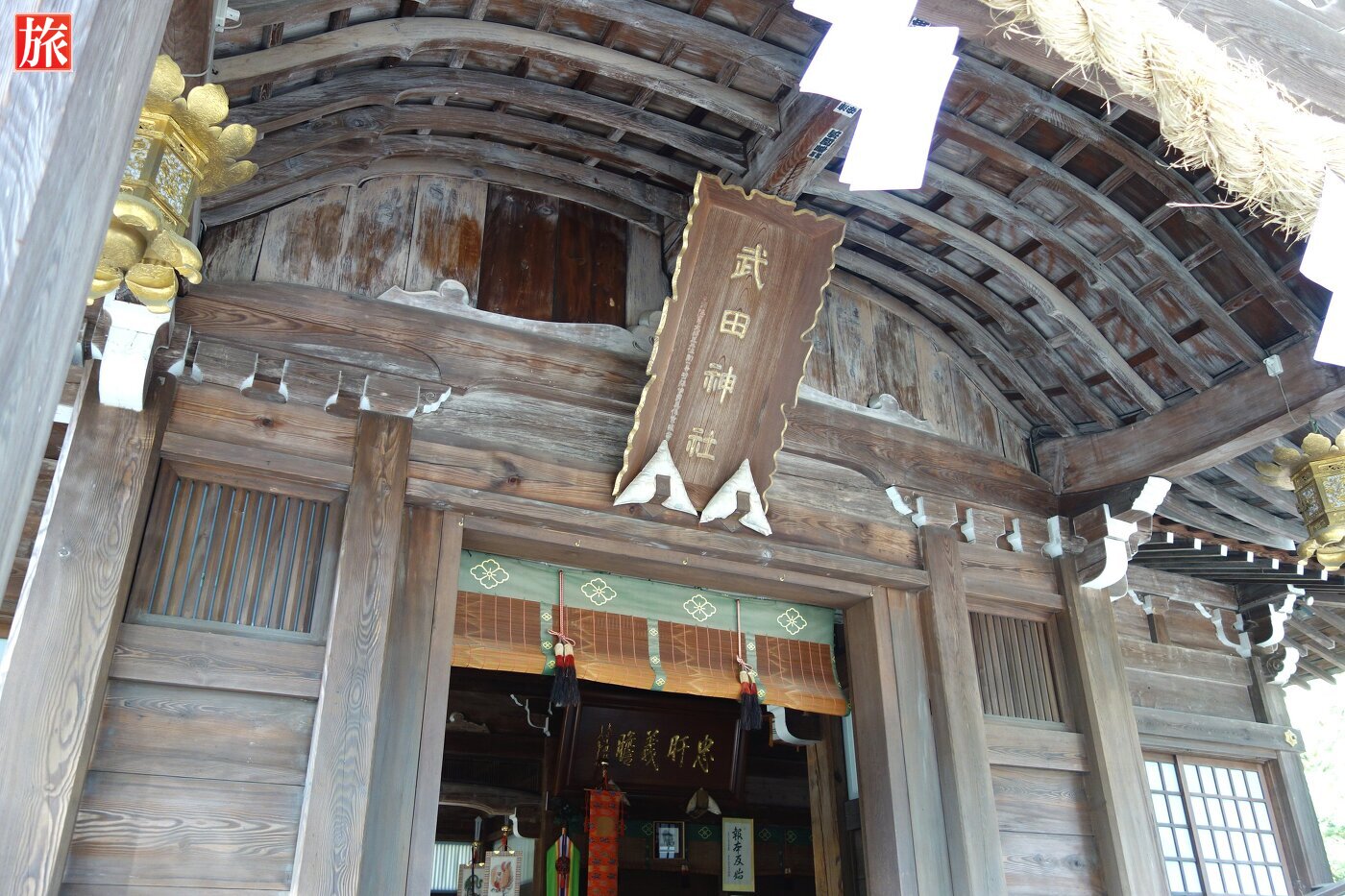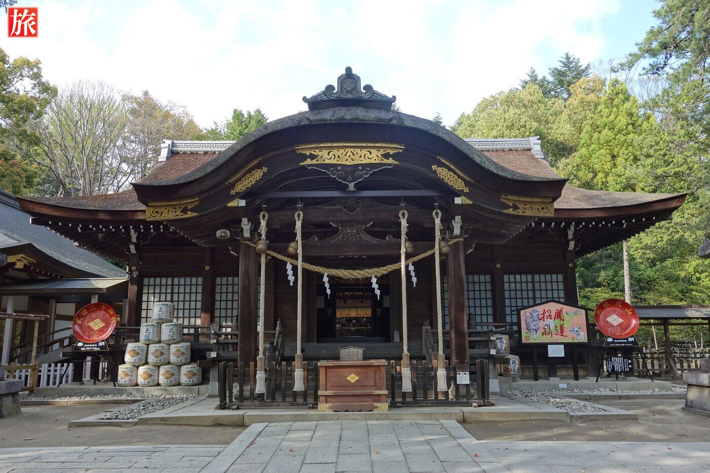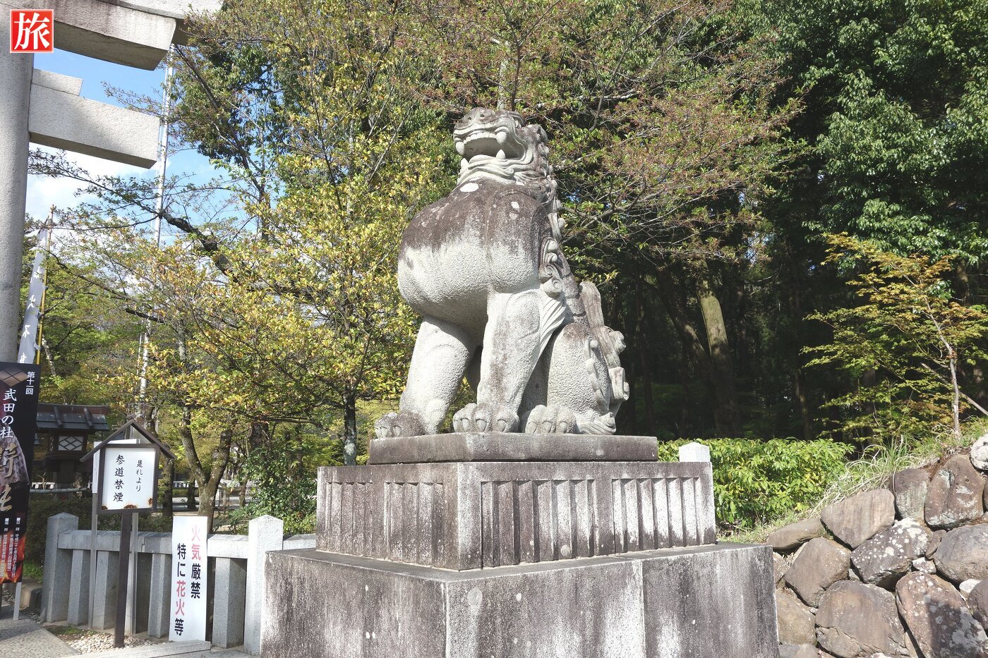 戦国時代、武田信虎・信玄・勝頼の三代が住んだつつじが崎館(武田氏館)の跡地に、1919年(大正8)に建立された神社。祭神は信玄で、境内には重厚な造りの社殿、武田家ゆかりの武具や資料を収めた宝物殿などがある。館跡(史跡)は土塁の外側に堀が巡らされ、中世の領主の館としては規模が大きい。春は桜が美しい。
