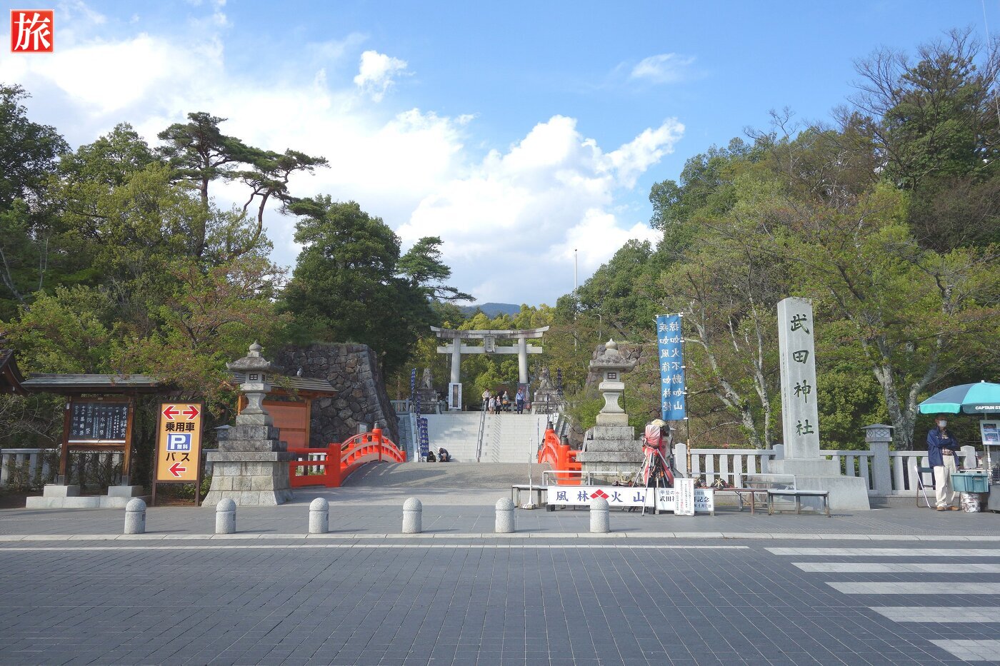 別名躑躅ヶ崎館跡と呼ばれる史跡武田氏館跡は、永正16(1519)年に武田信虎によって築かれ、信玄・勝頼と武田三代の本拠地として使用されていたそうです。武田氏館跡に、大正8年(1919年)に創建された神社が武田神社です。宝物殿には、戦国時代の信玄公軍扇・七星軍扇や太刀(吉岡一文字)・孫子の旗などが展示致してありますた。