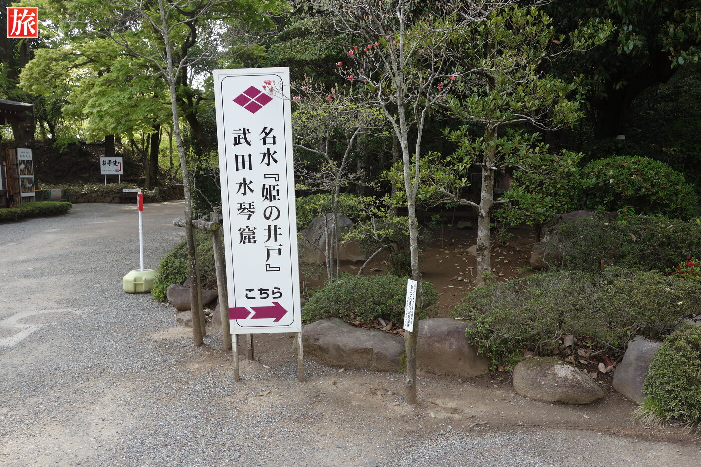 「姫の井戸」付近の様子。姫の井戸でお水とりをしました。姫の井戸は信玄公ご息女誕生の折、産湯に使用された事からこのように名付けられたとのことです。