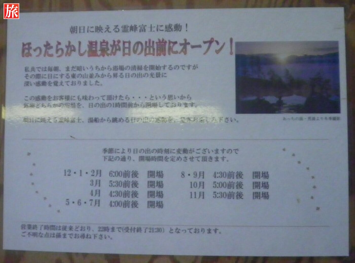 | 営業時間 | 日の出1時間前~22時(受付は~21時30分) |