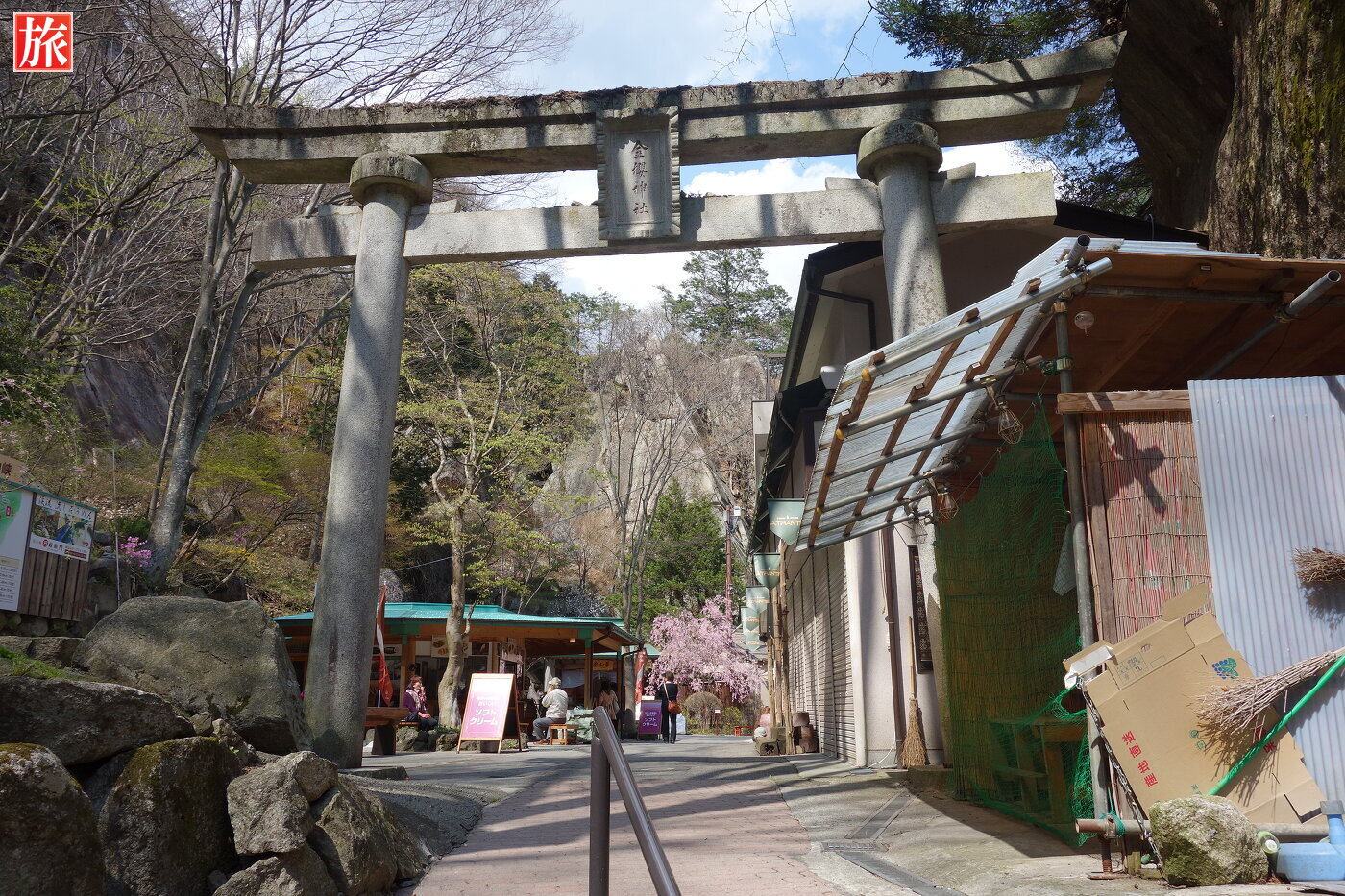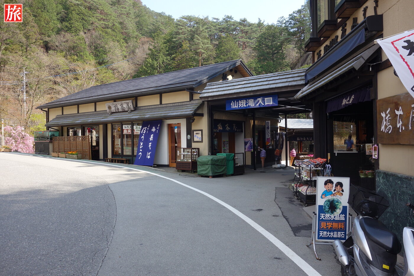 仙娥滝入口。入口右手のお土産屋(橋本屋)さんでは天然水晶鉱が見学できます。腹ごなしに橋本屋(食堂)さんに立ち寄りました。