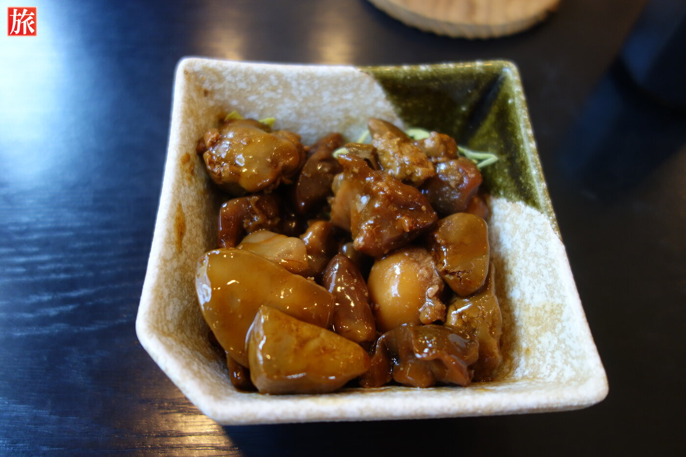 お座敷から見えた荒川沿いに咲く枝垂桜。食事メニュー。「B1グランプリ優勝」の甲府鳥もつ煮(520円)と「甲府名物」特製ほうとう鍋(1200円)を注文