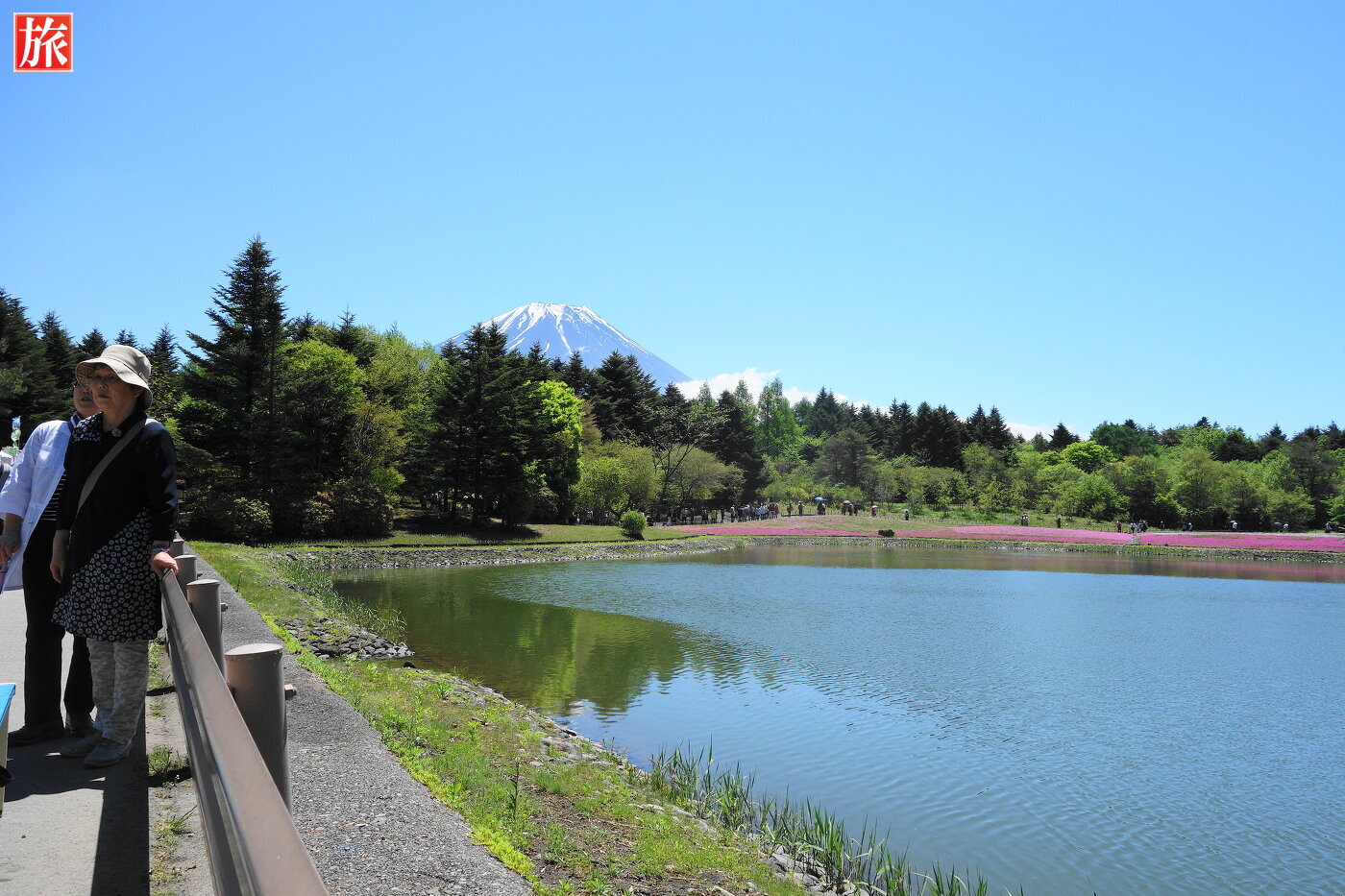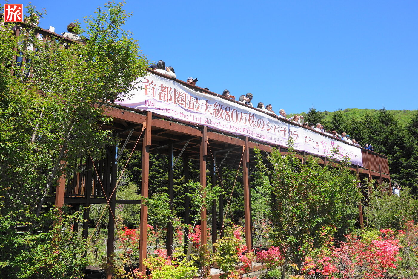 展望デッキ。デッキから眺めた富士山と芝桜。