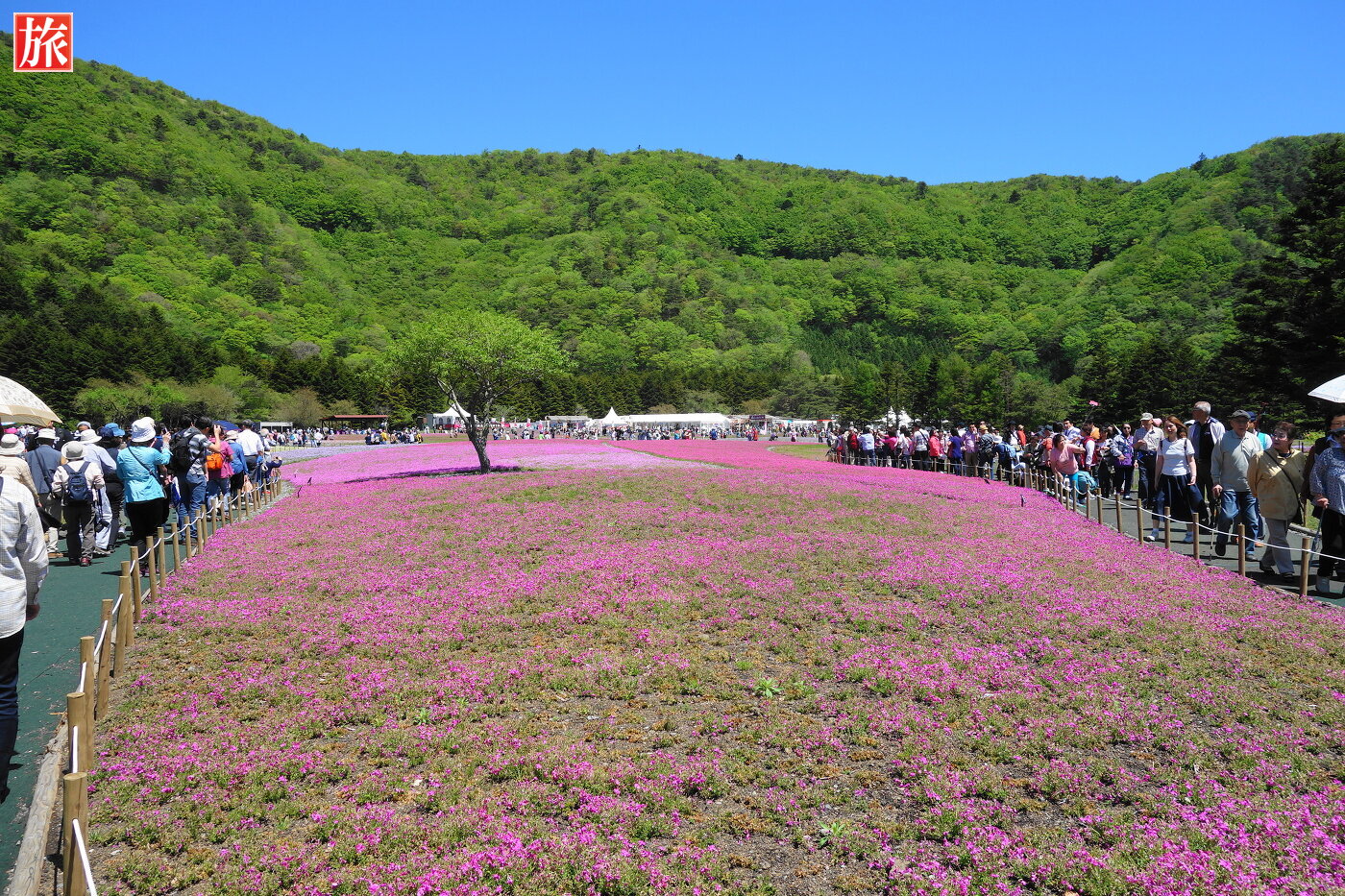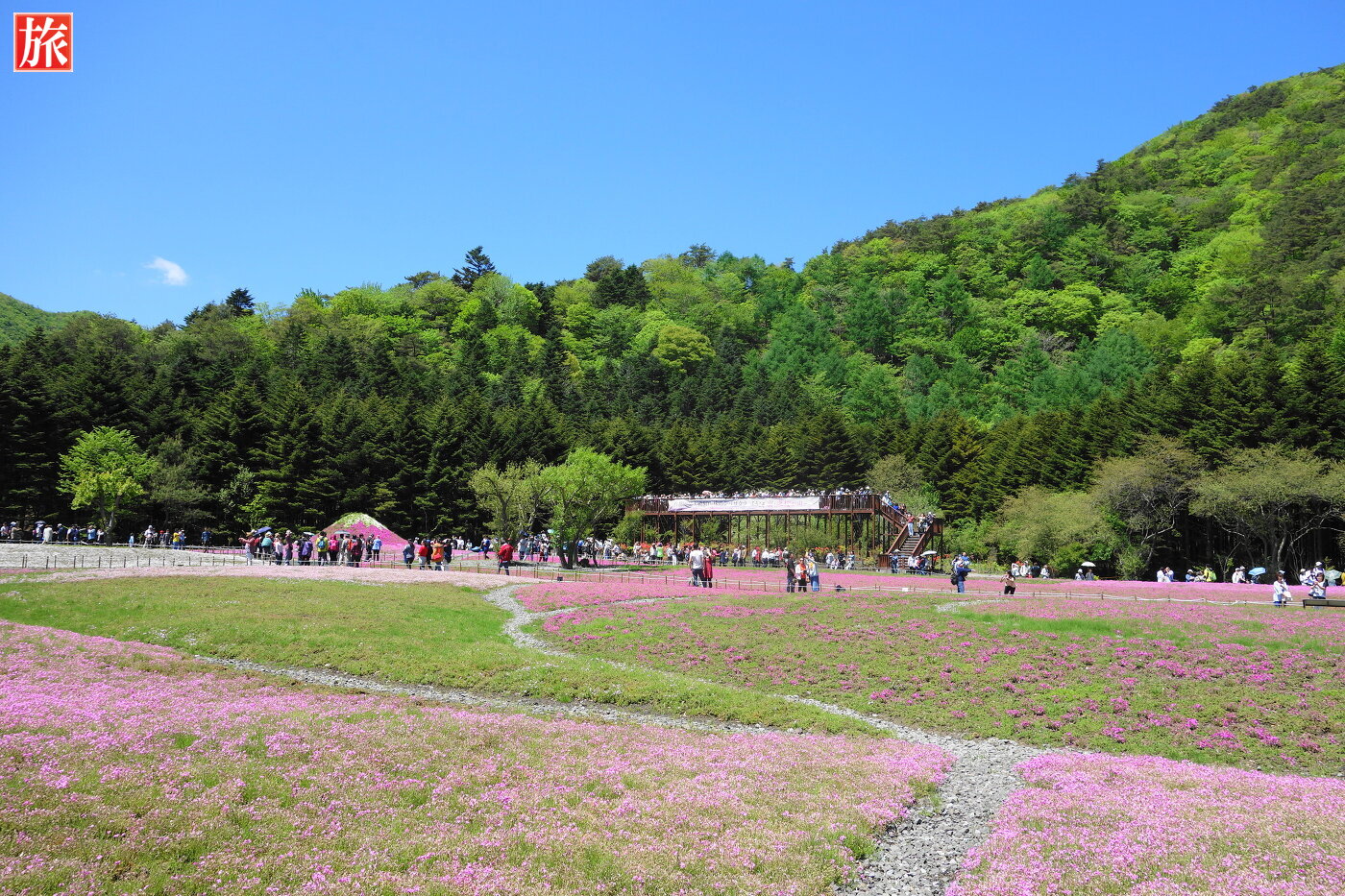 富士山うまいものフェスタ. 「富士芝桜まつり」会場。展望デッキ方向を望む。