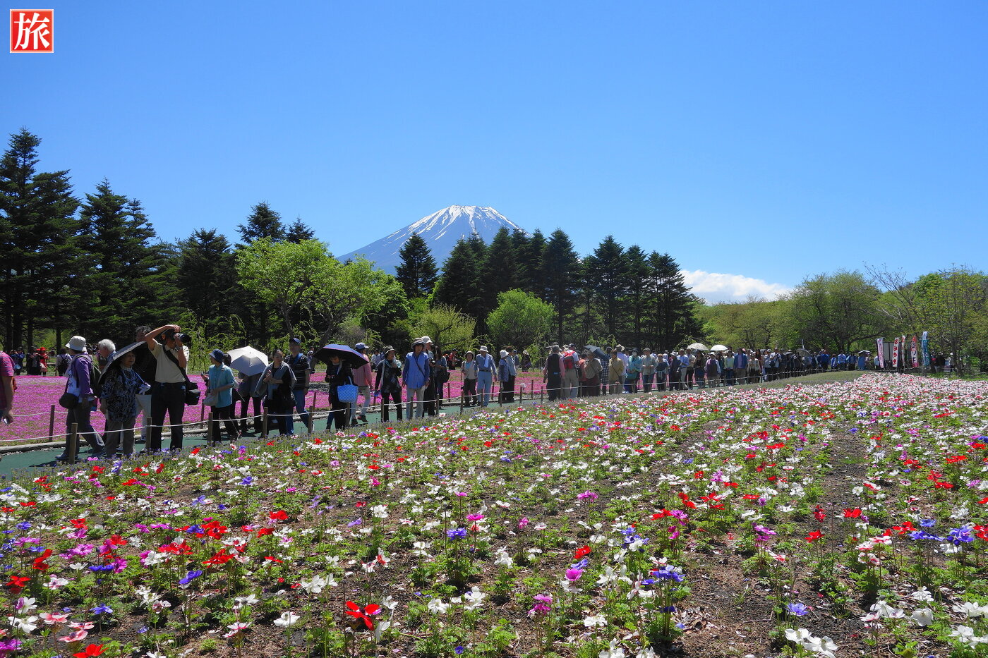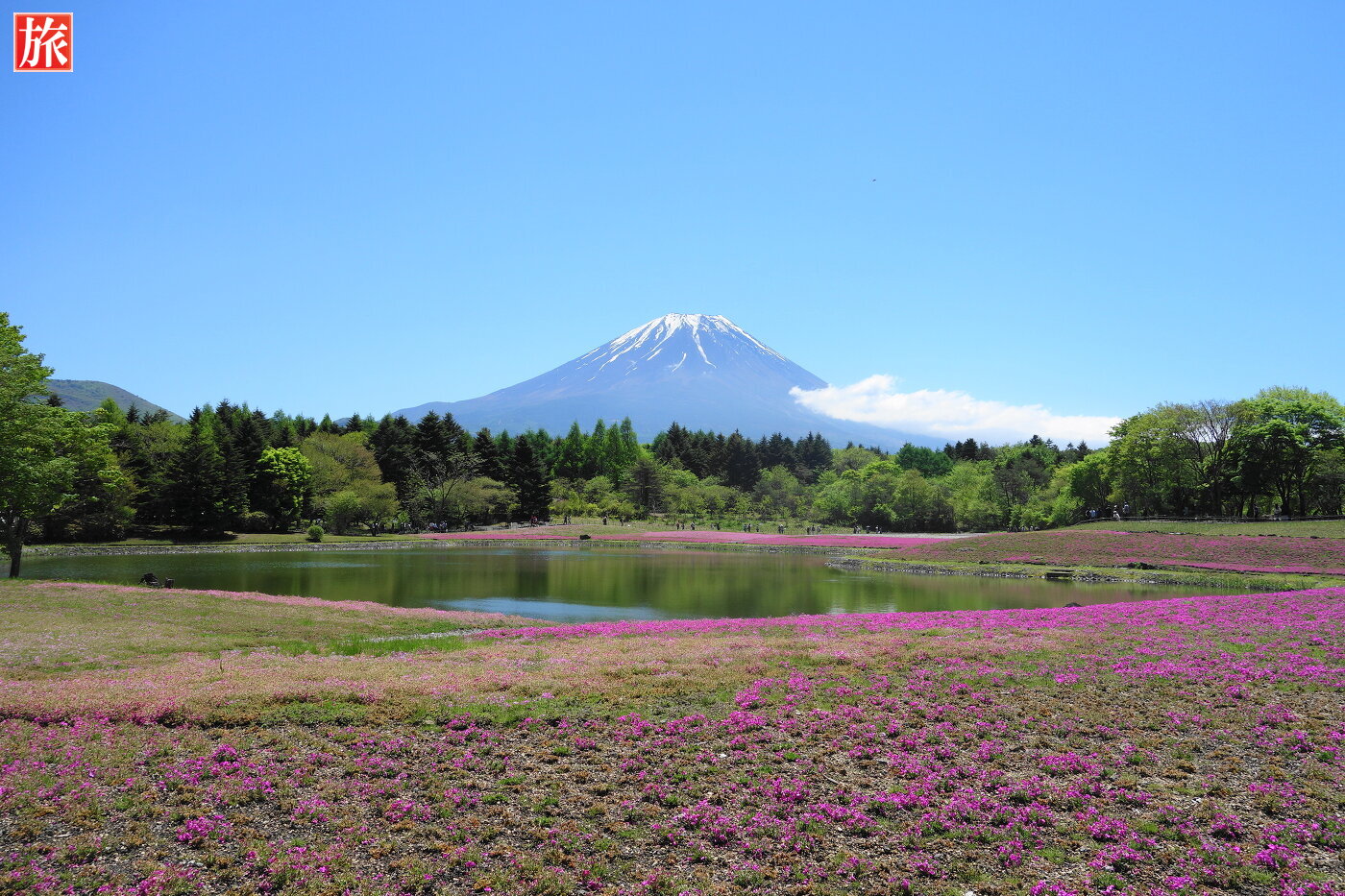 いい天気!富士山と芝桜・・・鮮やかな色のコントラストが美しい