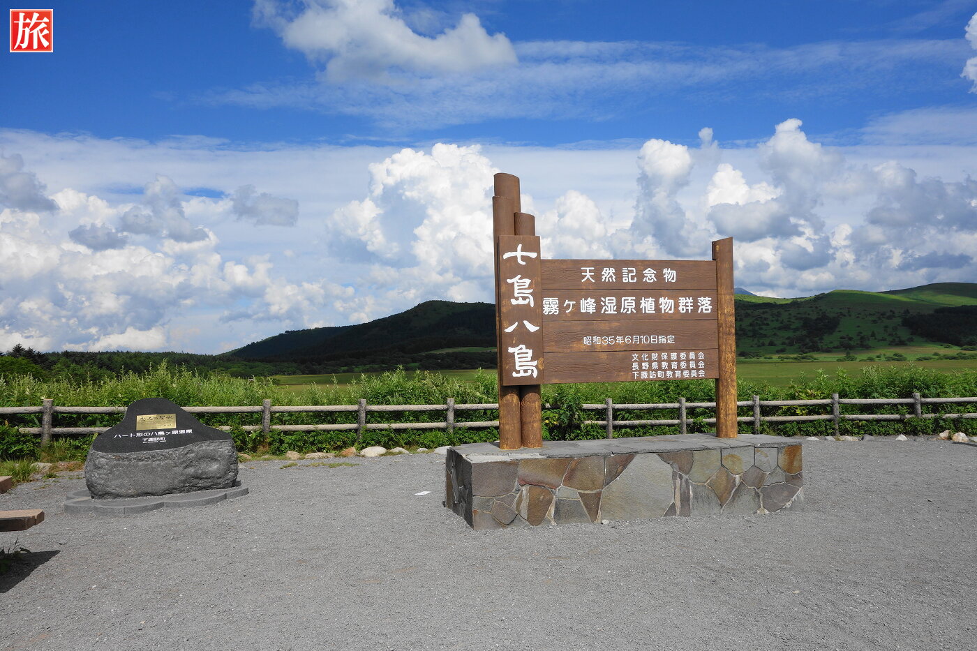 八島湿原「花ごよみ」6〜9月の案内。天然記念物 七島八島記念碑。恋人の聖地にも「八島ヶ原湿原がハート形をしていることから」認定されているみたいです。