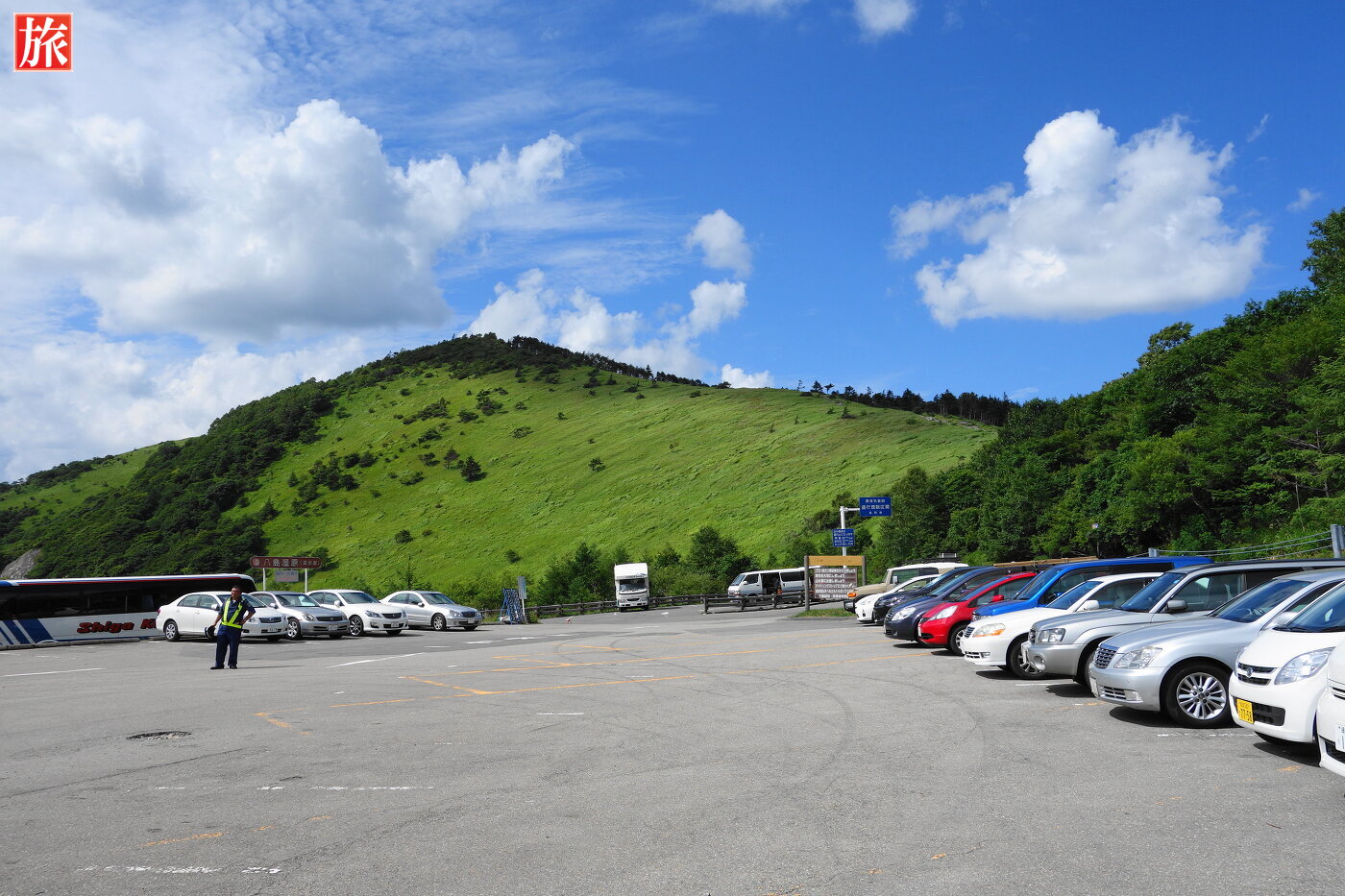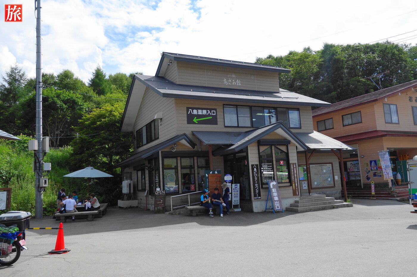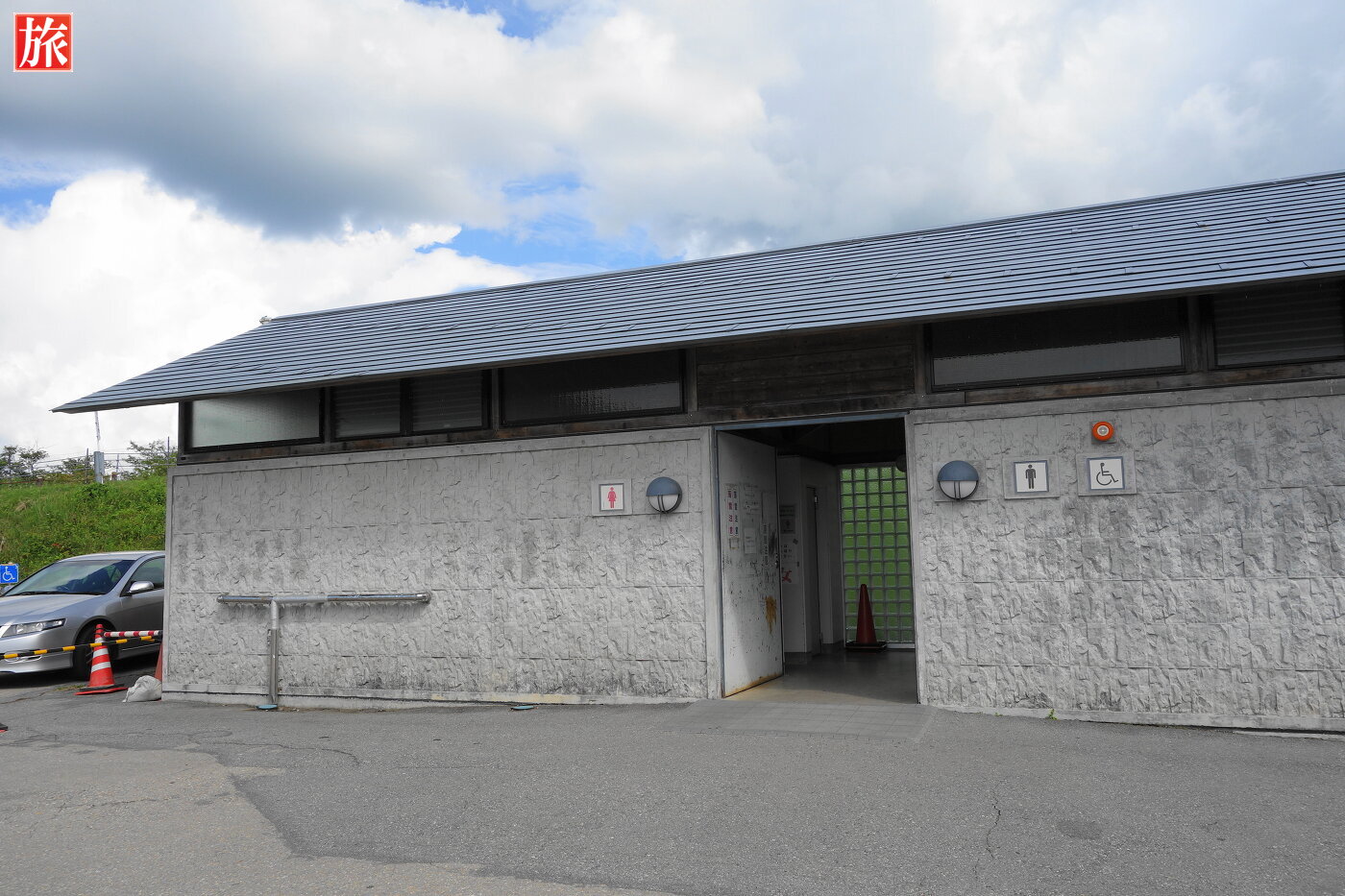 駐車場の様子です。駐車場内にある公衆トイレ。八島ヶ原湿原入口付近に八島ビジターセンターあざみ館があります。