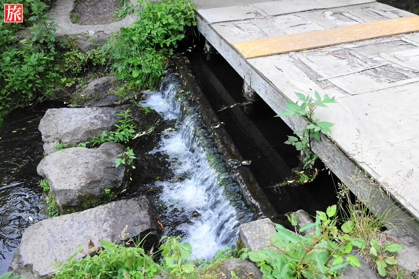池の北側付近。木製の橋がかかっています。橋上から南方向の雲場池を望む。