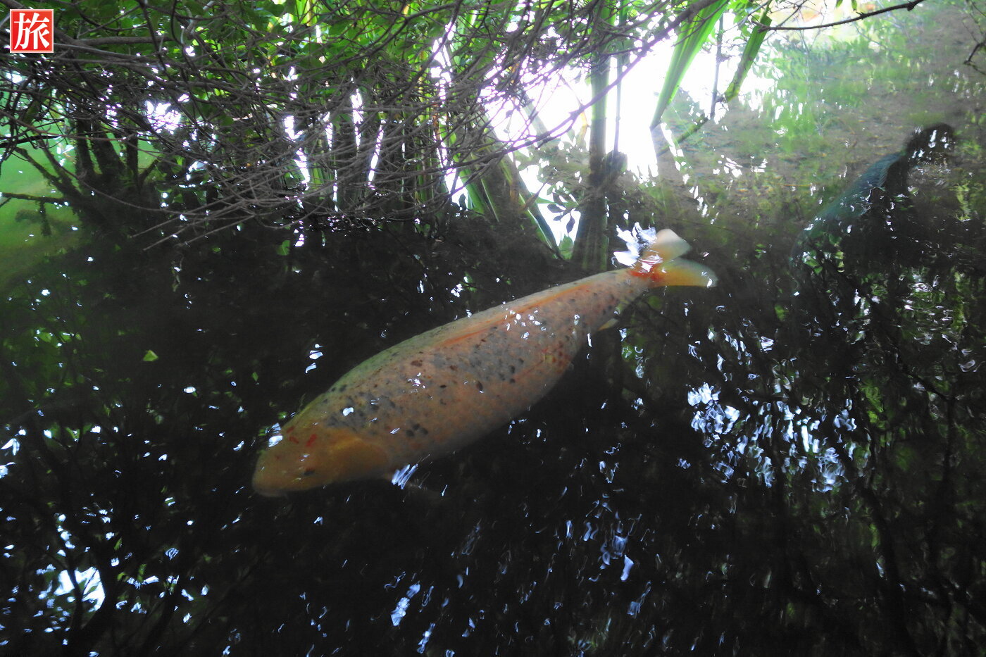 まるまる太った鯉。透明度が高い池です。約20分程度で一周してきました。